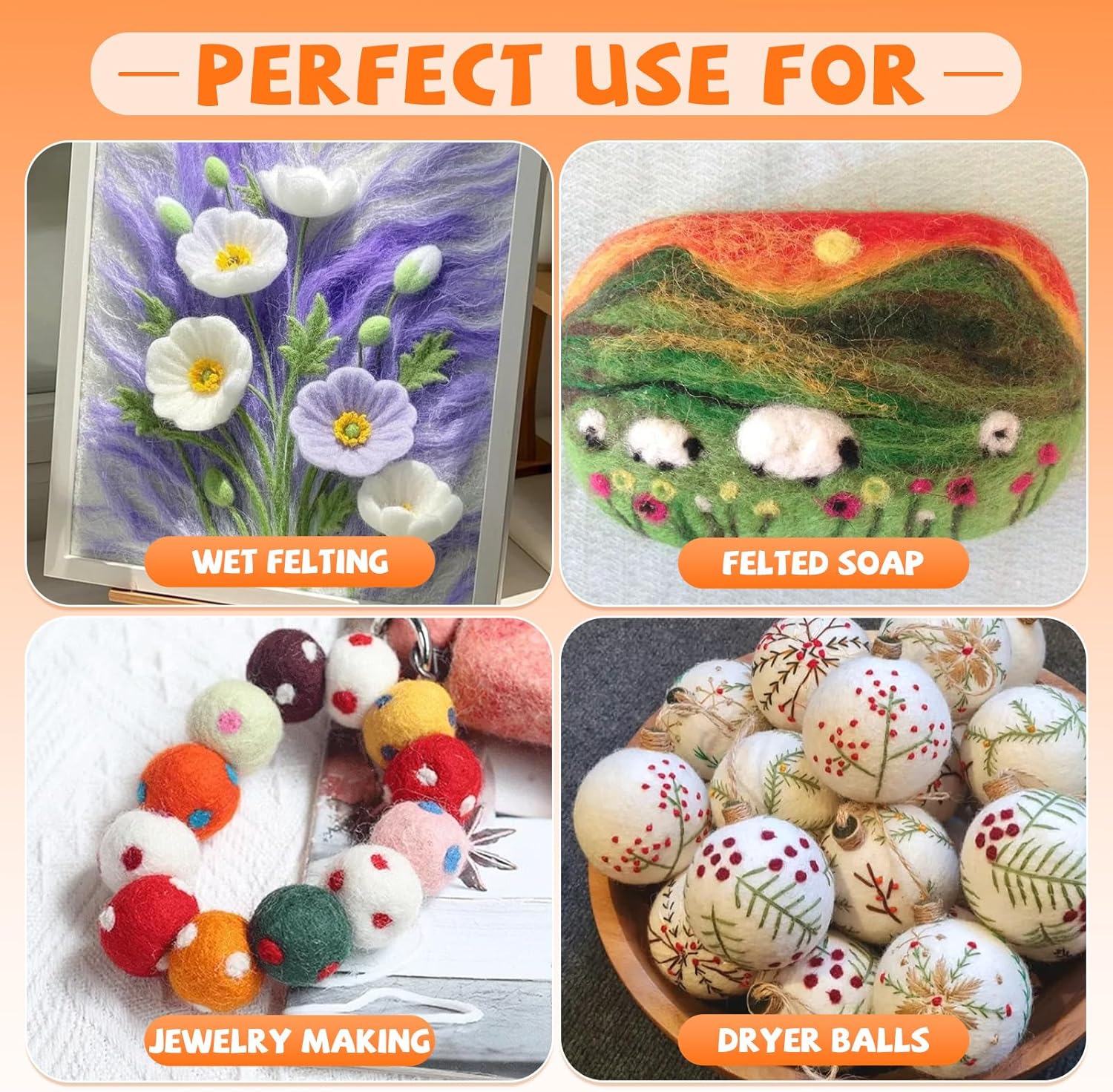 - High-Quality Materials: Our Needle Felting Wool is made of high-quality fiber wool, is soft and fluffy and has good plastiity. They can be easily and quickly shaped into any shape you want, or you can quickly tear off the pieces for felting. All kinds of wool are suitable for felting beginnersD