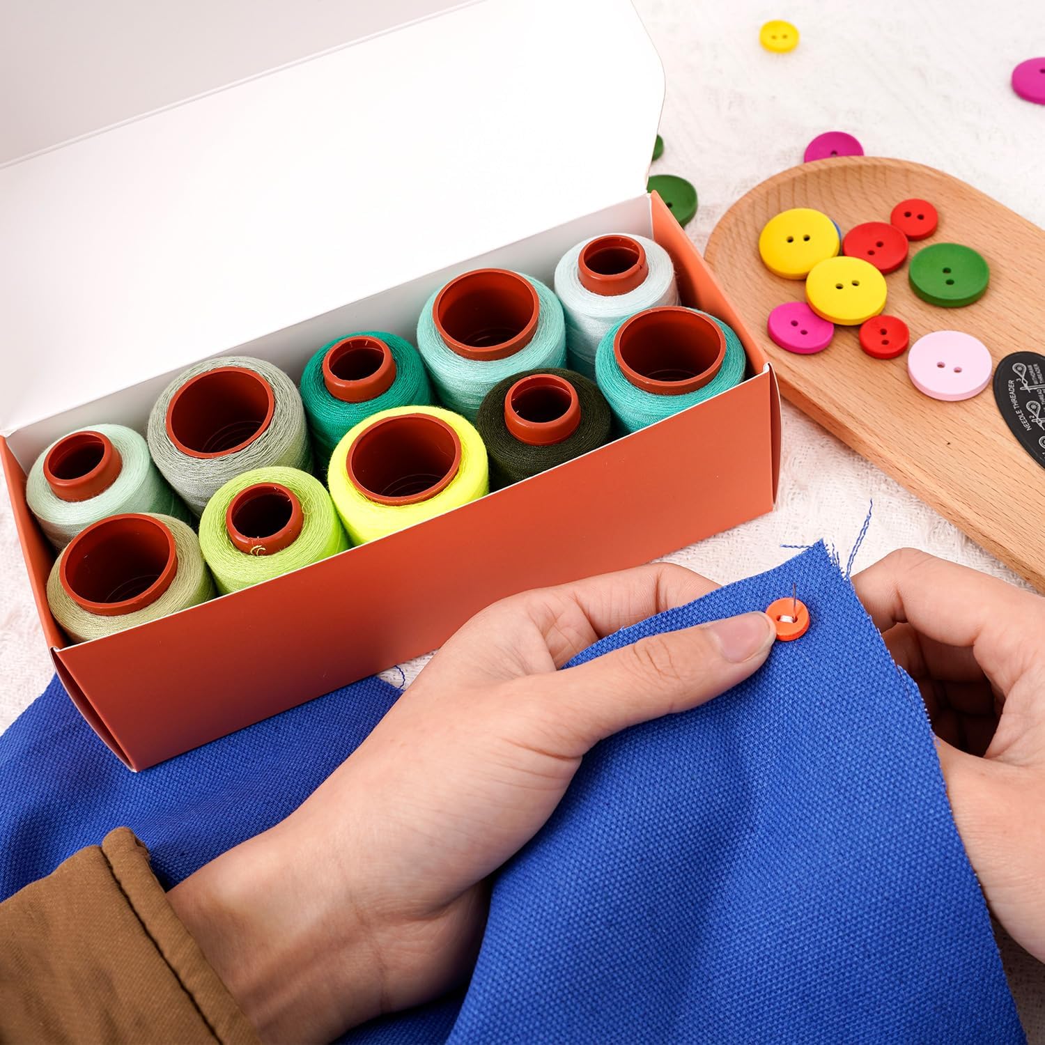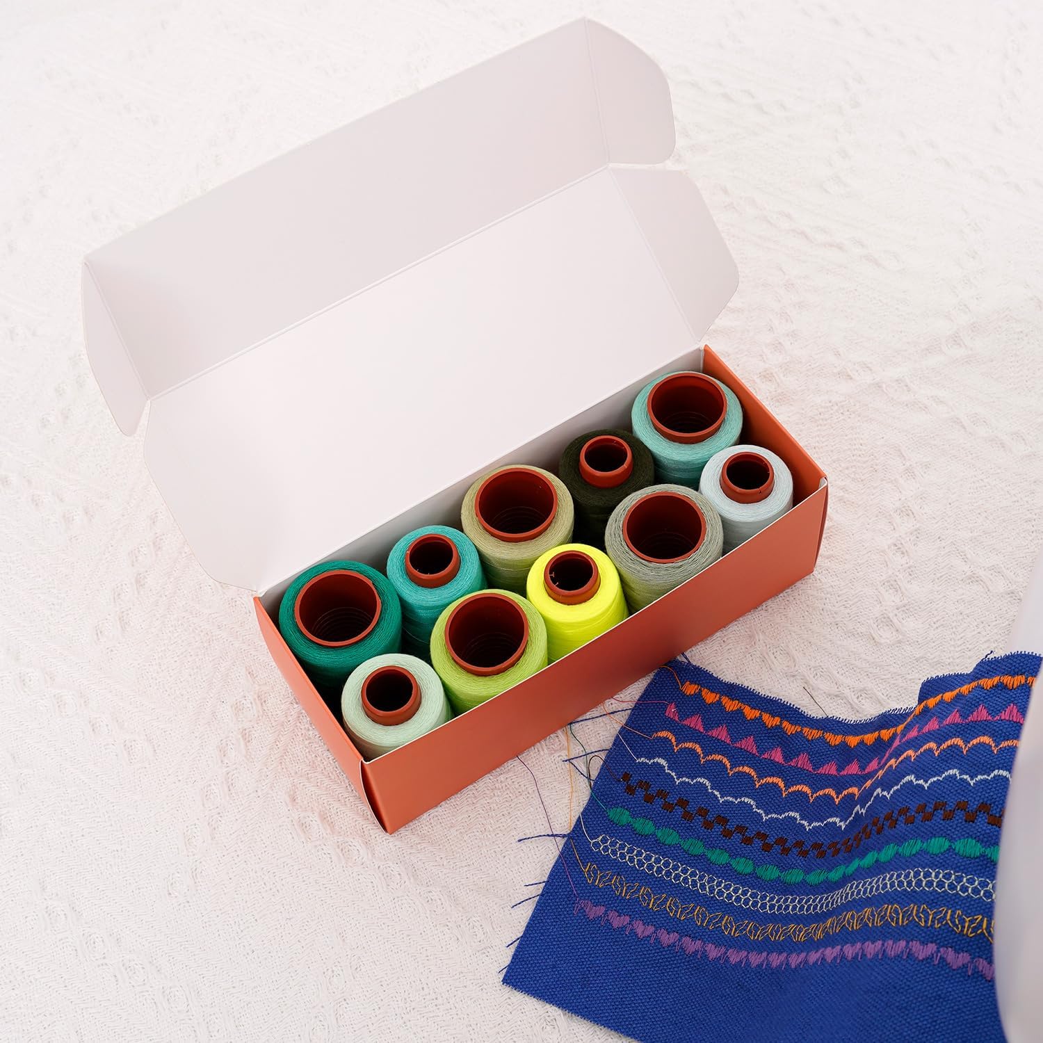 - This color thread kit comes with a paper box packaging, which is convenient for storage.The threads are neatly wound on sturdy spools, ensuring easy storage and smooth unwinding.