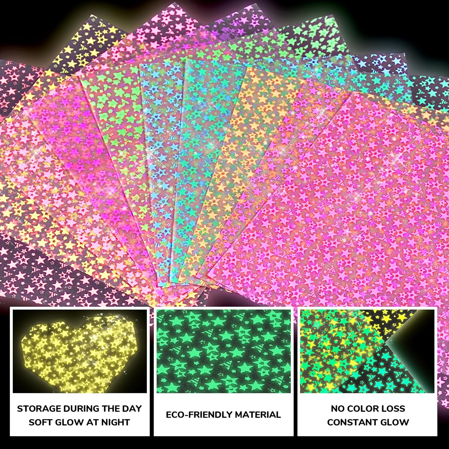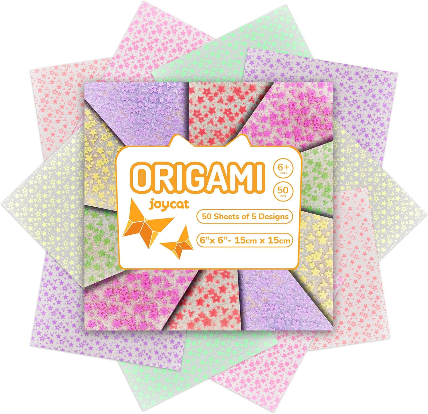 Joycat Pastel Glow in The Dark Origami Paper - 50 Sheets 6x6 Inches - Soft Luminous Sheets for Kids & Creative Projects, Ideal for Scrapbooking, Card Making and DIY Crafts