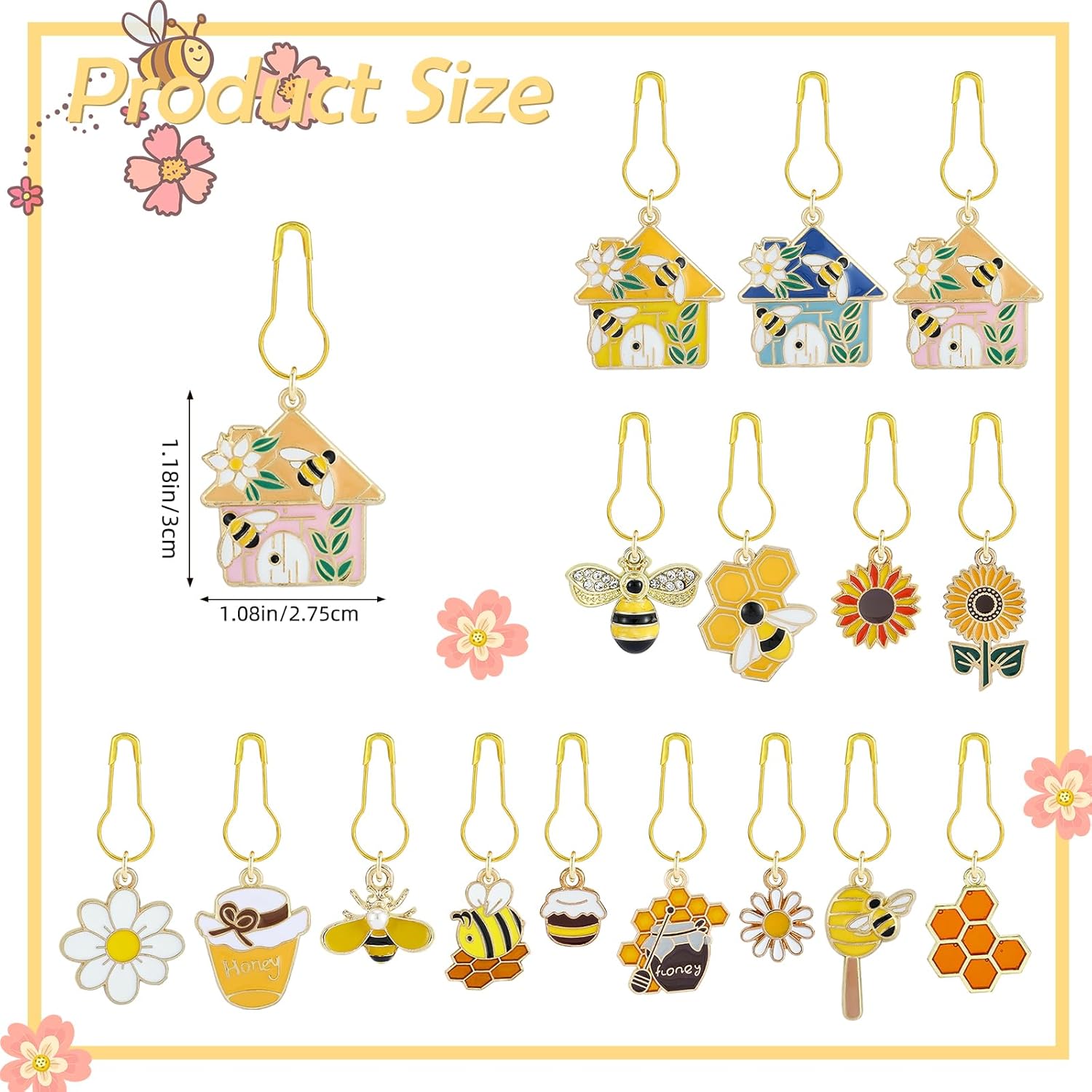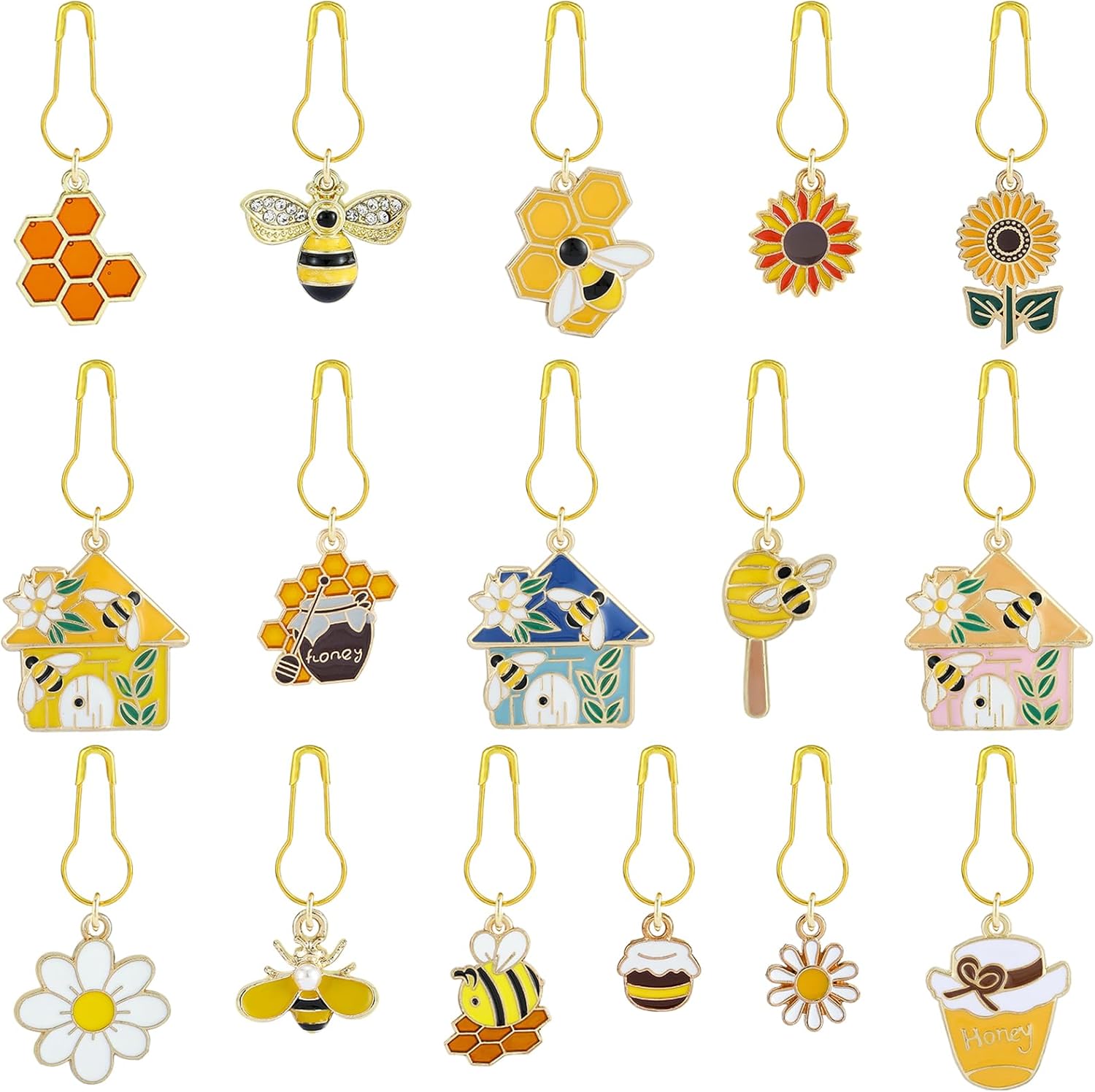 BEEFLYING 16Pcs Bee Honeycomb Stitch Marker Charms, Alloy Enamel Knitting Stitch Marker Charm Pendant for Sewing Crocheting Accessories