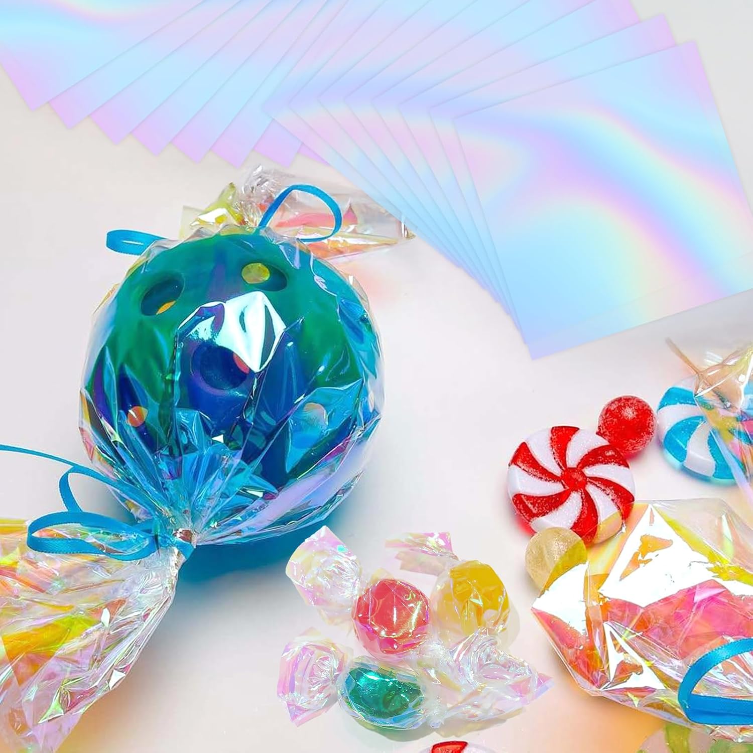 PEASUG 120 PCS Iridescent Cellophane Sheets, 7.5x7.5 Inches Holographic Candy Cellophane Wrap, Iridescent Paper for DIY Crafts Project, Art, Lights, Window Decoration