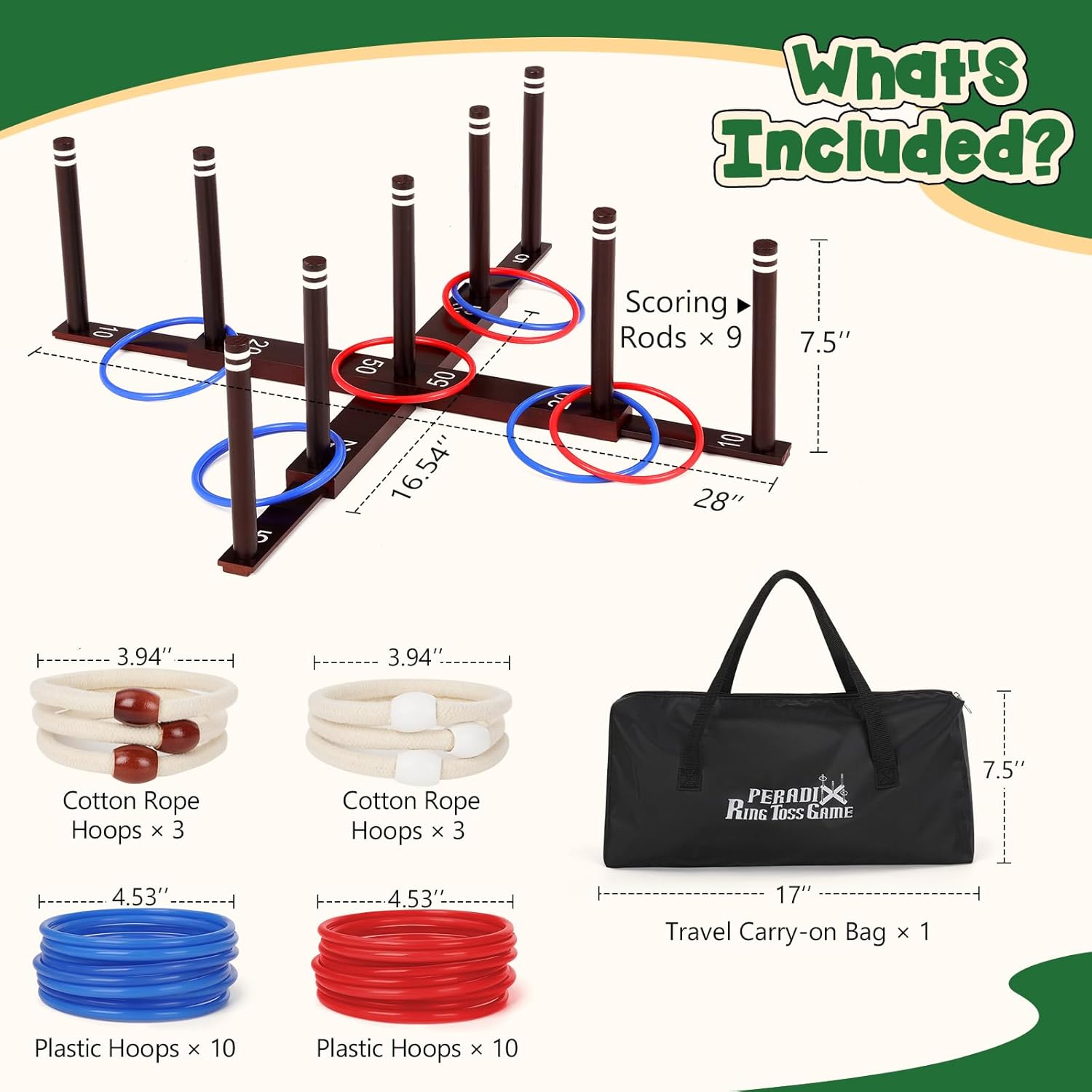 Peradix Ring Toss Game for Kids, Indoor Outdoor Fun Holiday Lawn Yard Game for Family & Adults with 26 Rings, Easy Set Up Backyard Beach Outdoor Game Toys, Portable to Carry Outside Kids Camping Sport