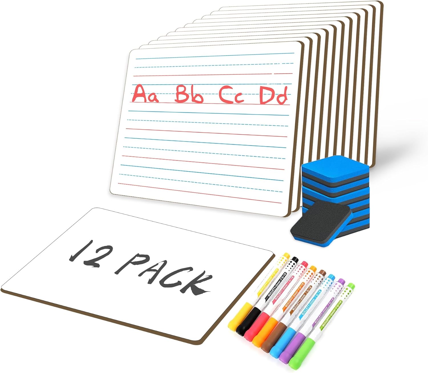- 【Wipe Board Set】Dry erase boards classroom pack Include 2/6/12 dry erase board,pens and erasers,The mini dry erase board is a great addition to the school supplies for teachers for classroom