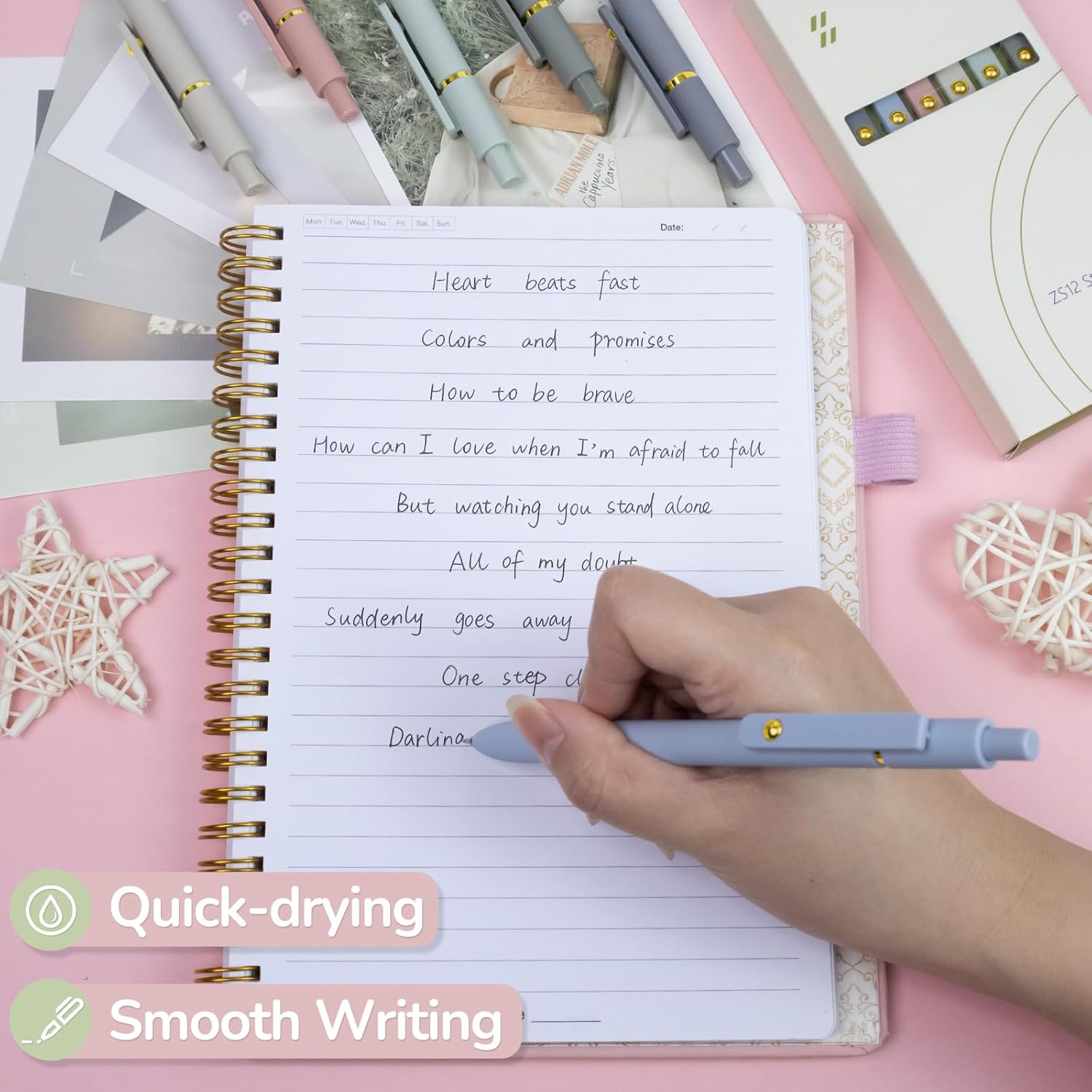 Gel Pens, 6 pcs 0.5mm Black Ink Pens Gold Morandi Barrel Fine Point Smooth Writing Pens Quick Dry Pen for School Office Supplies, Gifts for Girls Women