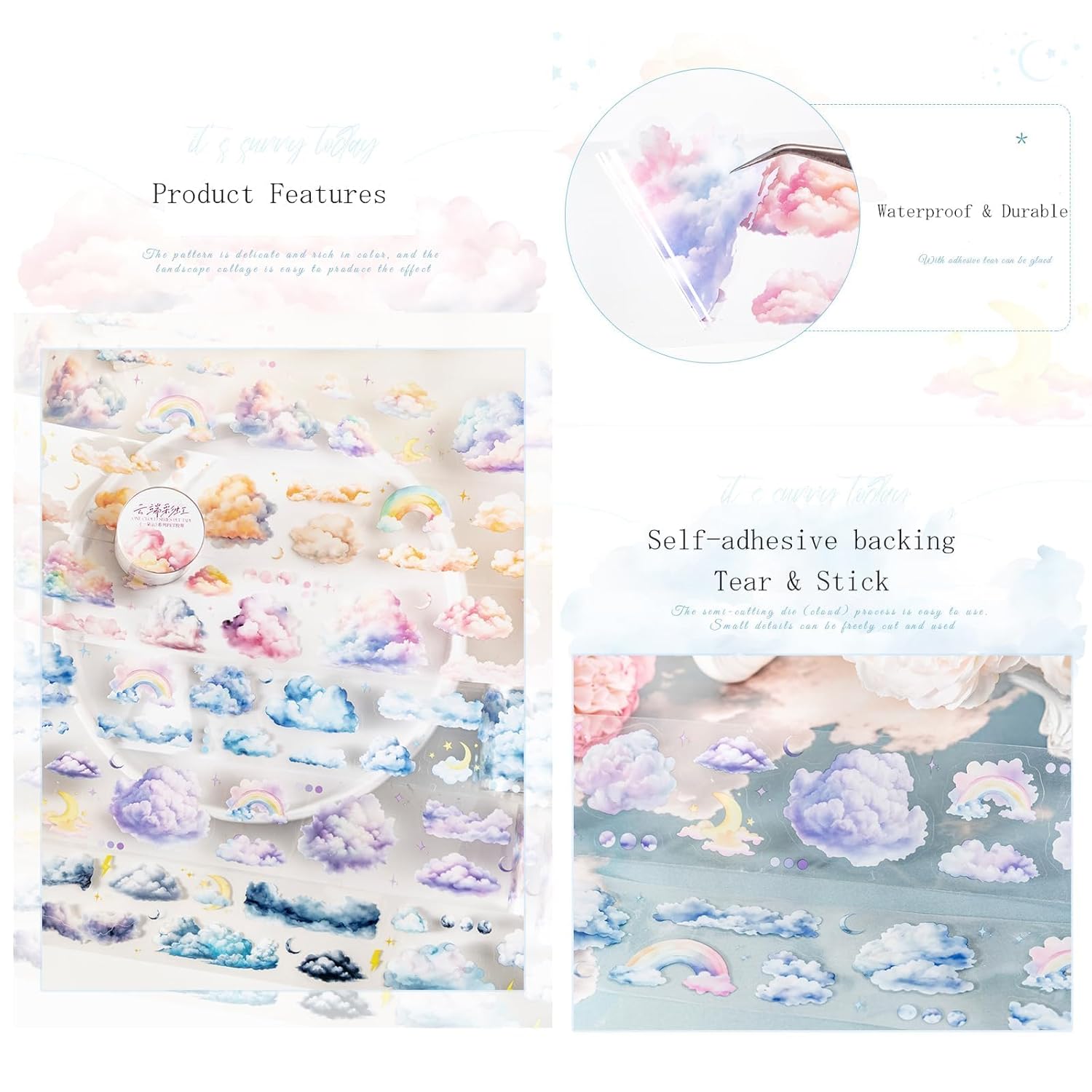 6 Rolls Cloud PET Tape Set,Pre-Cut Sky Ephemera Stickers for Scrapbook Supplies,Journaling,Junk Journal,Scrapbooking,Crafting,DIY Projects, Diaries(Cloud)