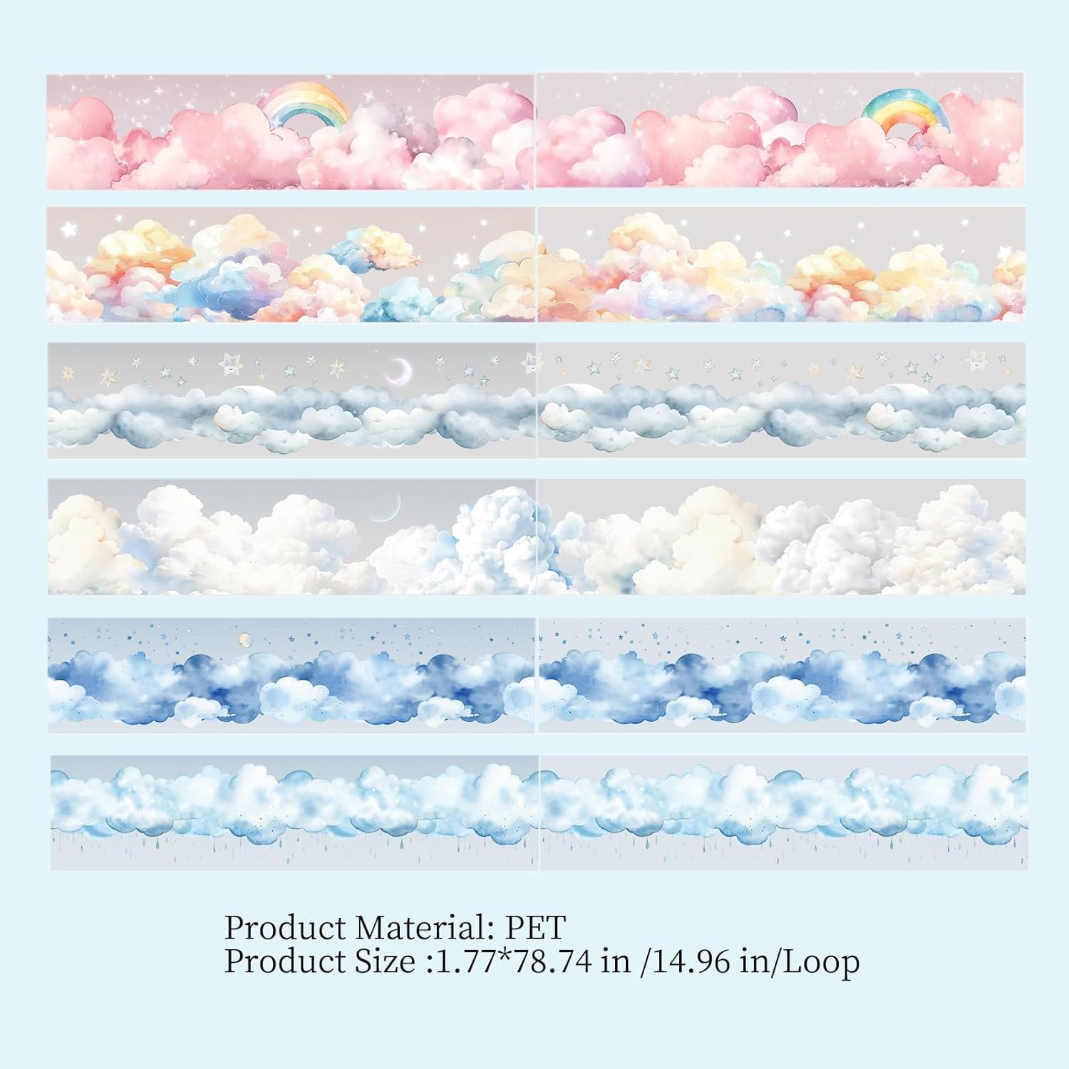 - Tape Set:You will receive 6 rolls cloud themed tape,including clouds, rainbows, stars, moon and more elemental