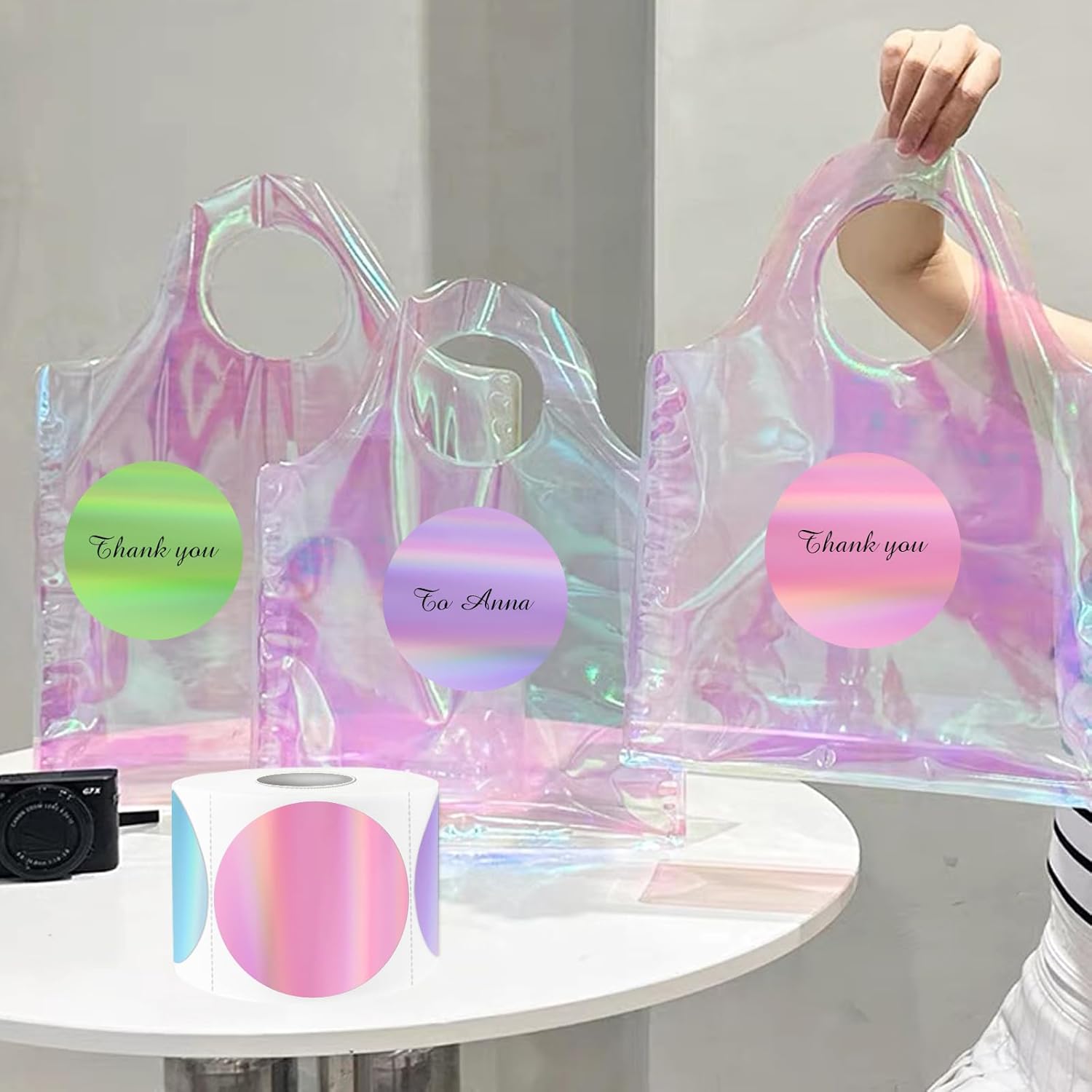 - Holographic Thermal Sticker Labels: Printed on rainbow metallic vinyl, the color of the surface of the sticker can be changed under the light with the move, which is beautiful and charming! Our holographic stickers offer an amazing visual experience like and leave a remarkable impression