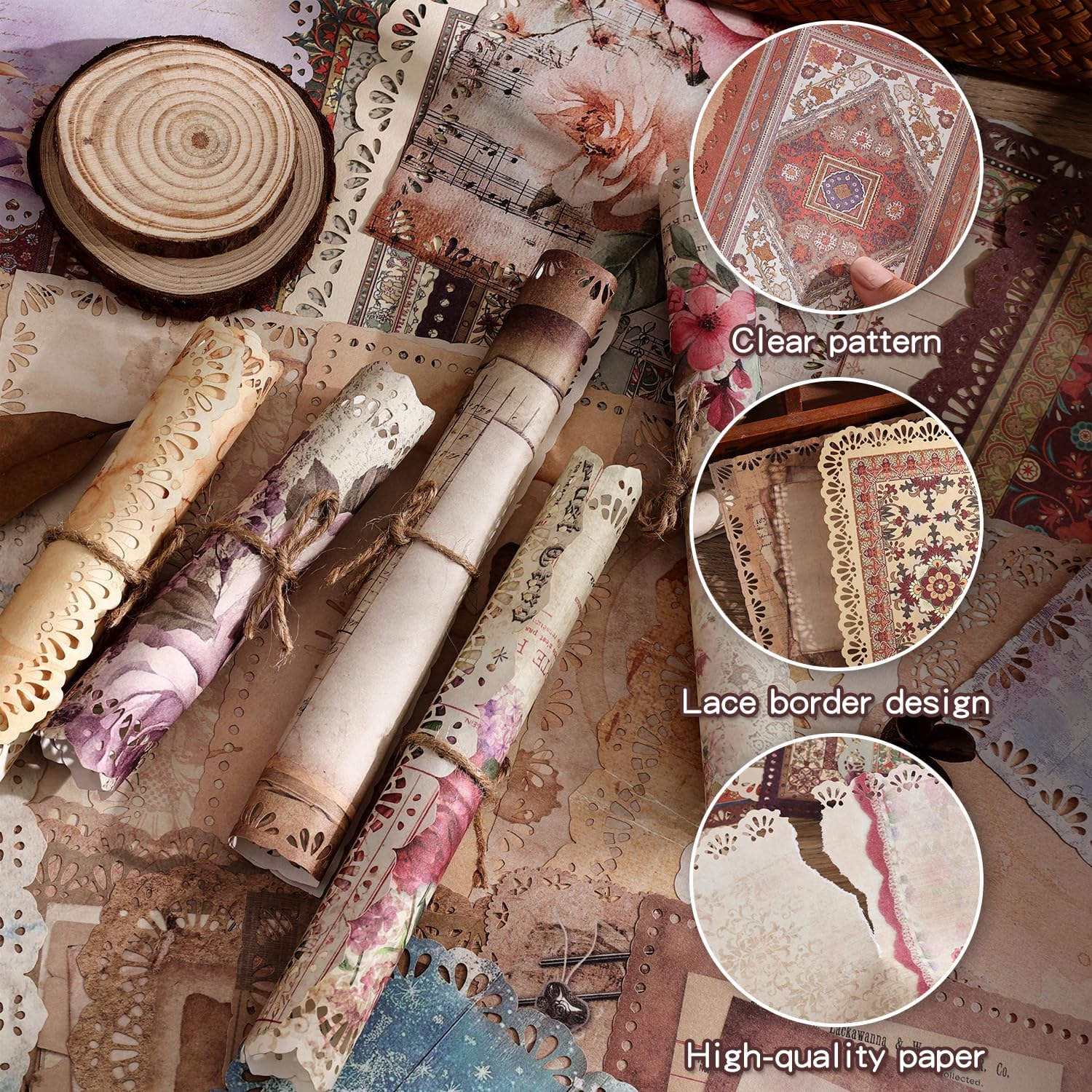 66 Sheets Lace Edged Scrapbook Paper Set, 6 Packs Vintage Decorative Paper Scrapbooking Supplies for Letter Writing Background Stationery Ephemera for Junk Journaling, DIY Art Collage 4.9x6.9 IN