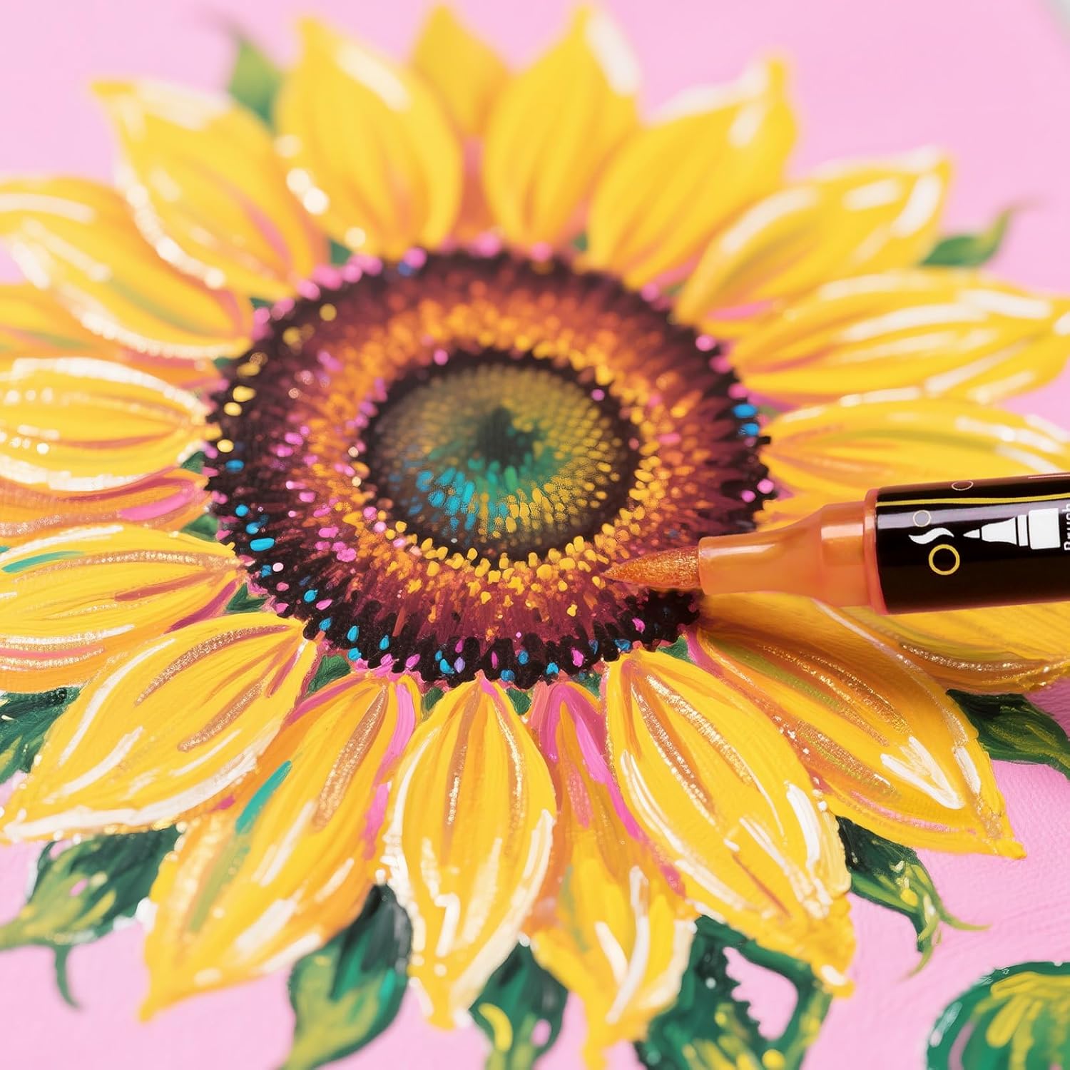 - 🔀【Dual-Tip Precision: Fine Details to Broad Coverage】Experience professional control with our acrylic paint markers! Each paint pen delivers a 1mm fine tip for intricate details plus a flexible brush tip for smooth shading. Works effectively on rocks, canvas, wood, and glass surfaces.
