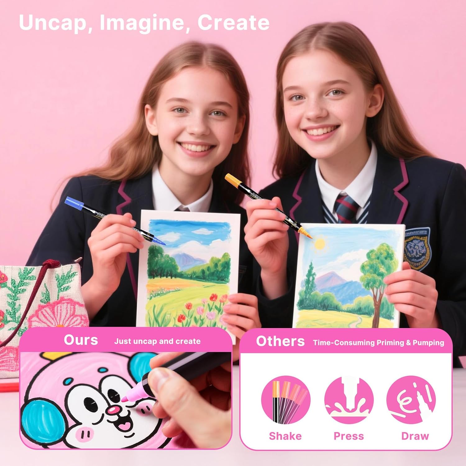 - ⚡【Instant Use: No Shake, No Prime Required】Begin projects immediately! These paint pens are ready straight from packaging - no shaking or priming necessary. The fast-drying formula helps prevent smudges and enables clean layering with these acrylic markers.