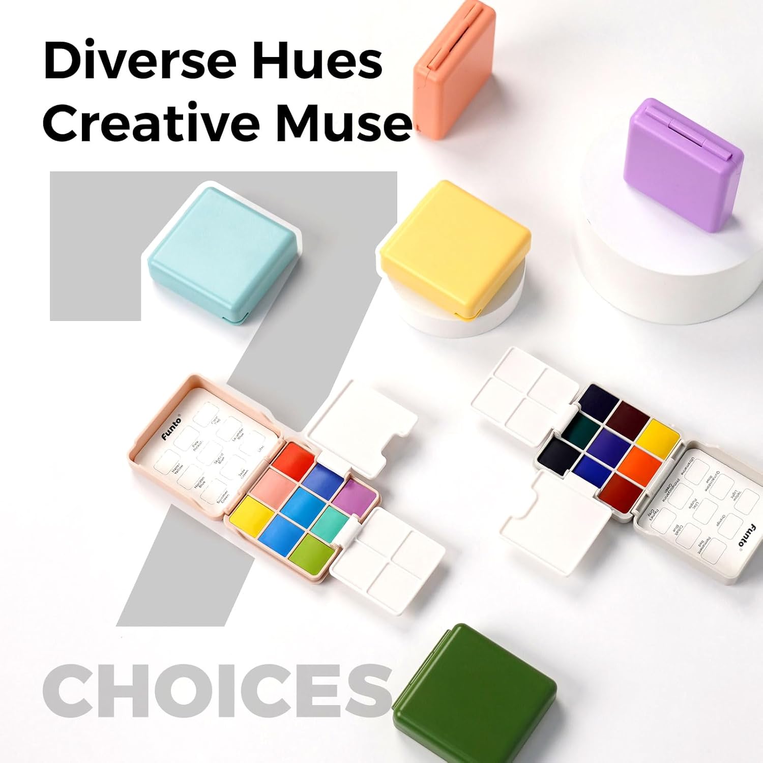 - ALL IN ONE KIT - Funto Pocket Watercolor Paint Set meets all you need, 9 colors, leather crossbody bag, paint water cup, nylon brush, dust bag, 2 foldable palettes, and mini watercolor papers, the perfect travel paint kit for all level artists