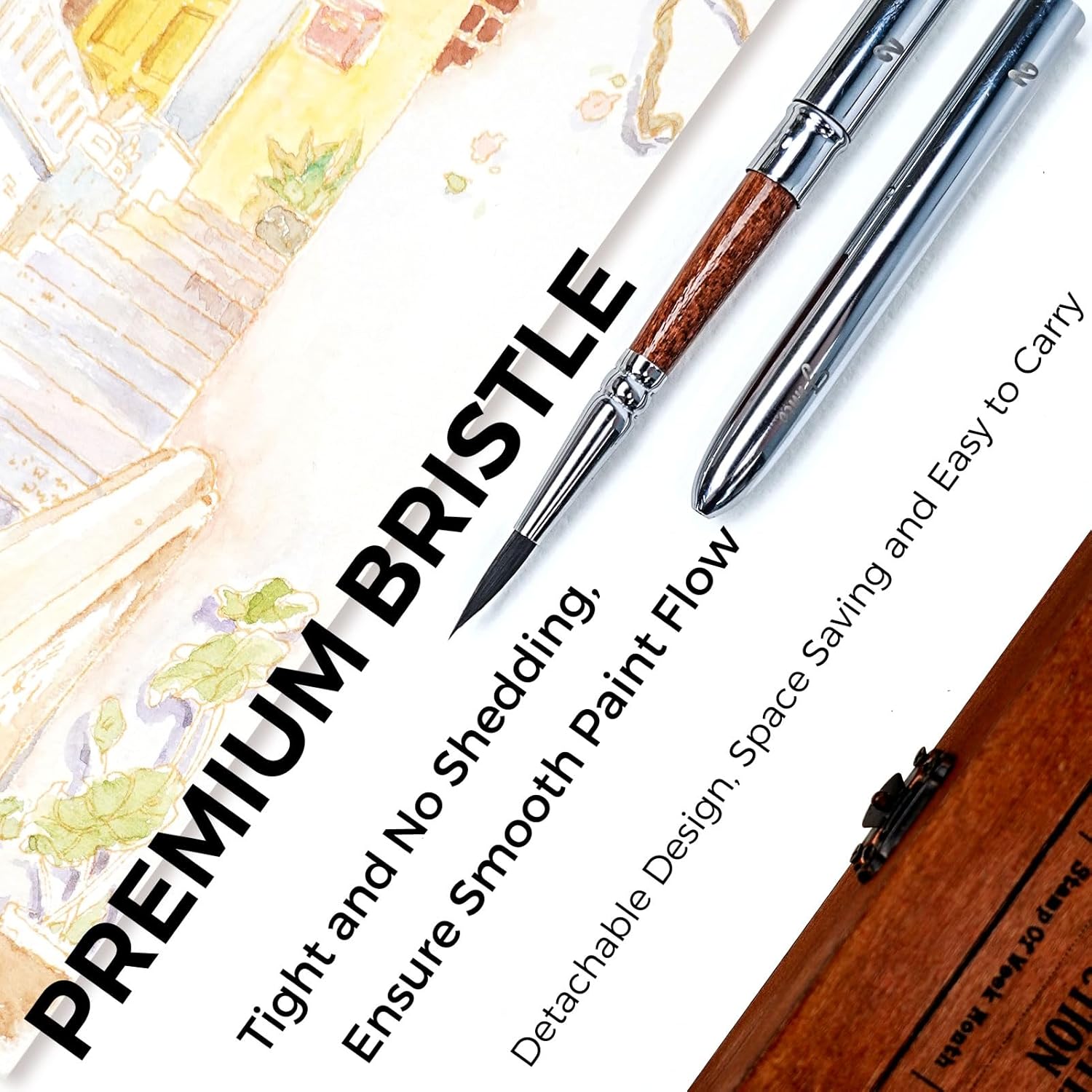 - HIGH-QUALITY BRUSH - Use soft synthetic squirrel bristles to ensure great liquid holding capacity, and smooth paint flow. Tight brush no shedding and flaking. The detachable design perfectly saves space and is very suitable for outdoor painting