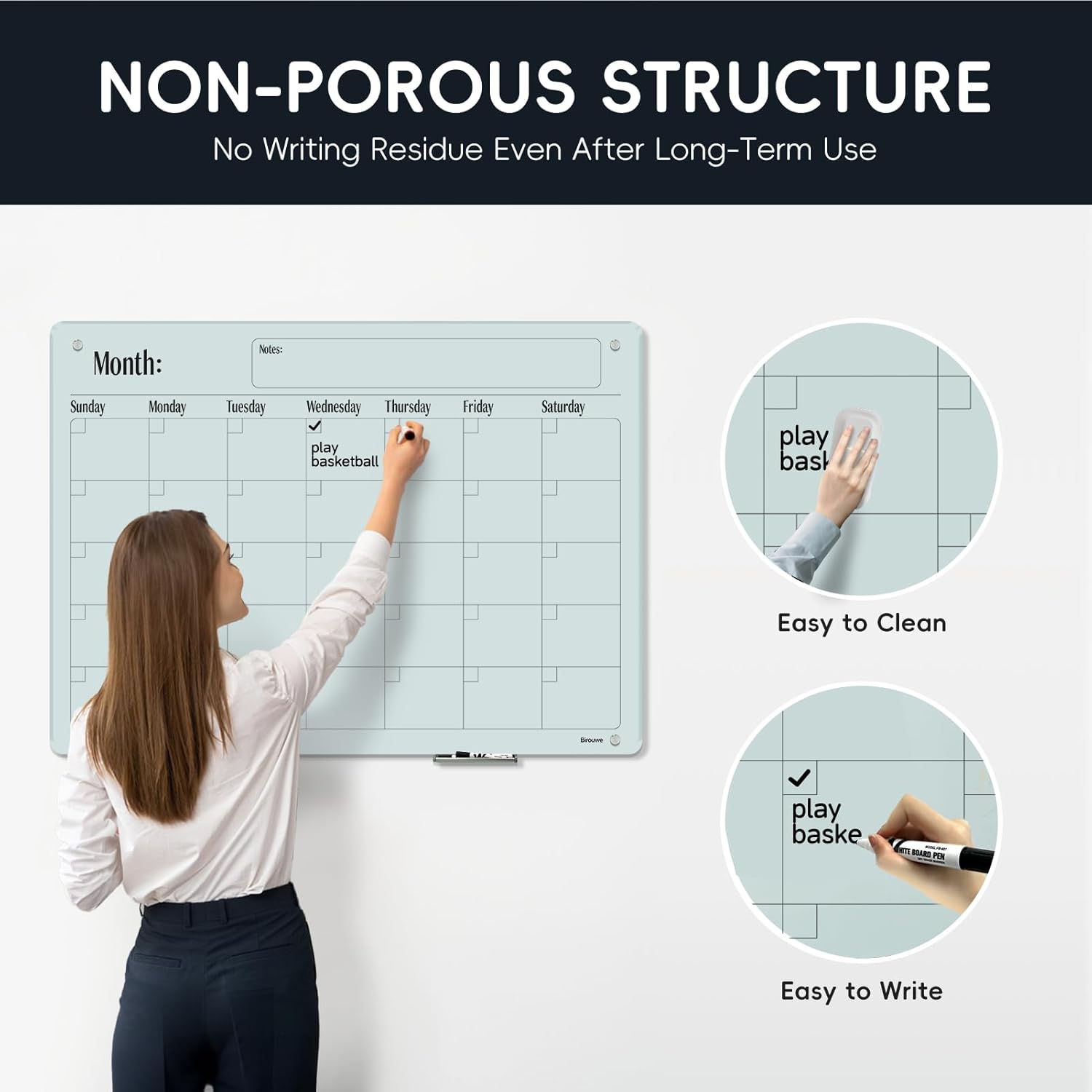 Magnetic Glass Monthly Calendar Whiteboard - Glass Dry Erase Board 48"x36" Large Frameless Glass Board for Walls Office School and Home