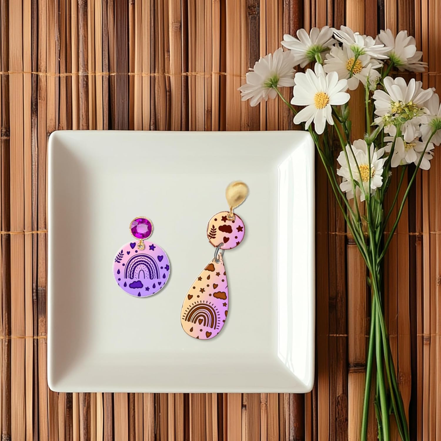 - Rainbow Design: The bohemian style polymer clay texture sheet for clay jewellery making is very delicate and beautiful. Perfect for jewellery and other small objects, rainbow and plant pattern design meets a variety of your creative needs, giving your creations a touch of personality and creativity