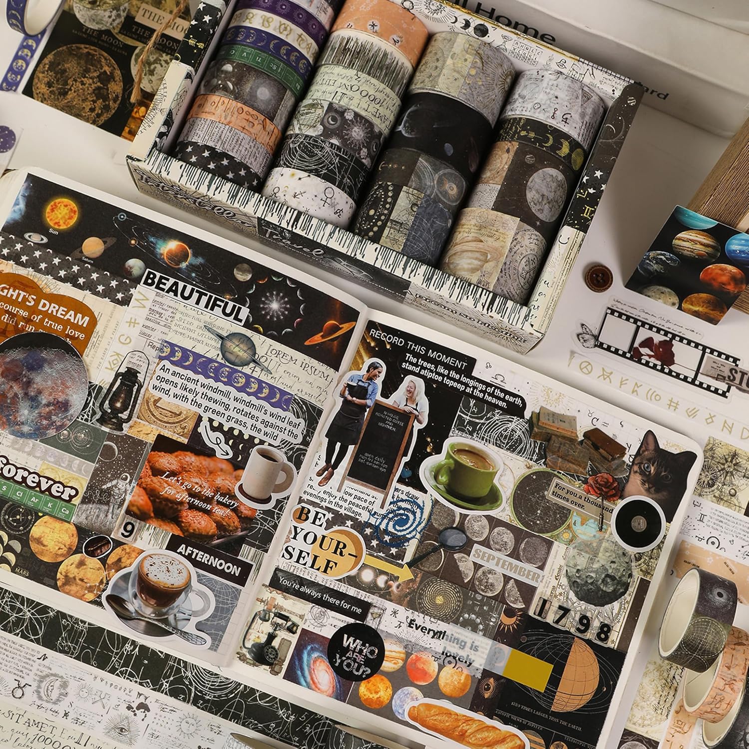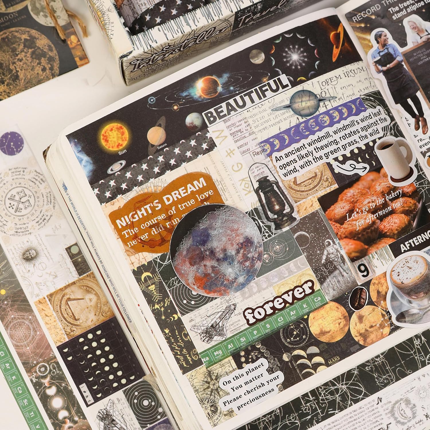 Vintage Washi Tape Set - 24 Rolls Arts Adhesive Tapes Assorted Retro Decorative Masking Tape Sets for Craft, Kids, Scrapbook, DIY, Gift Wrapping (11-Celestial Dreams)