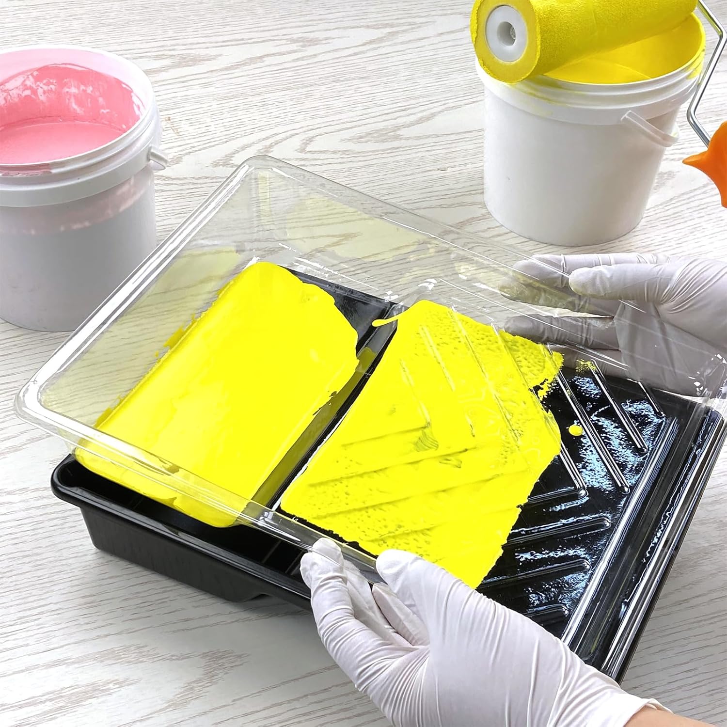 - Get Complete Paint Tray Set: Includes 2 sturdy reusable black plastic paint trays and 2 matching clear disposable liners for mess-free painting.