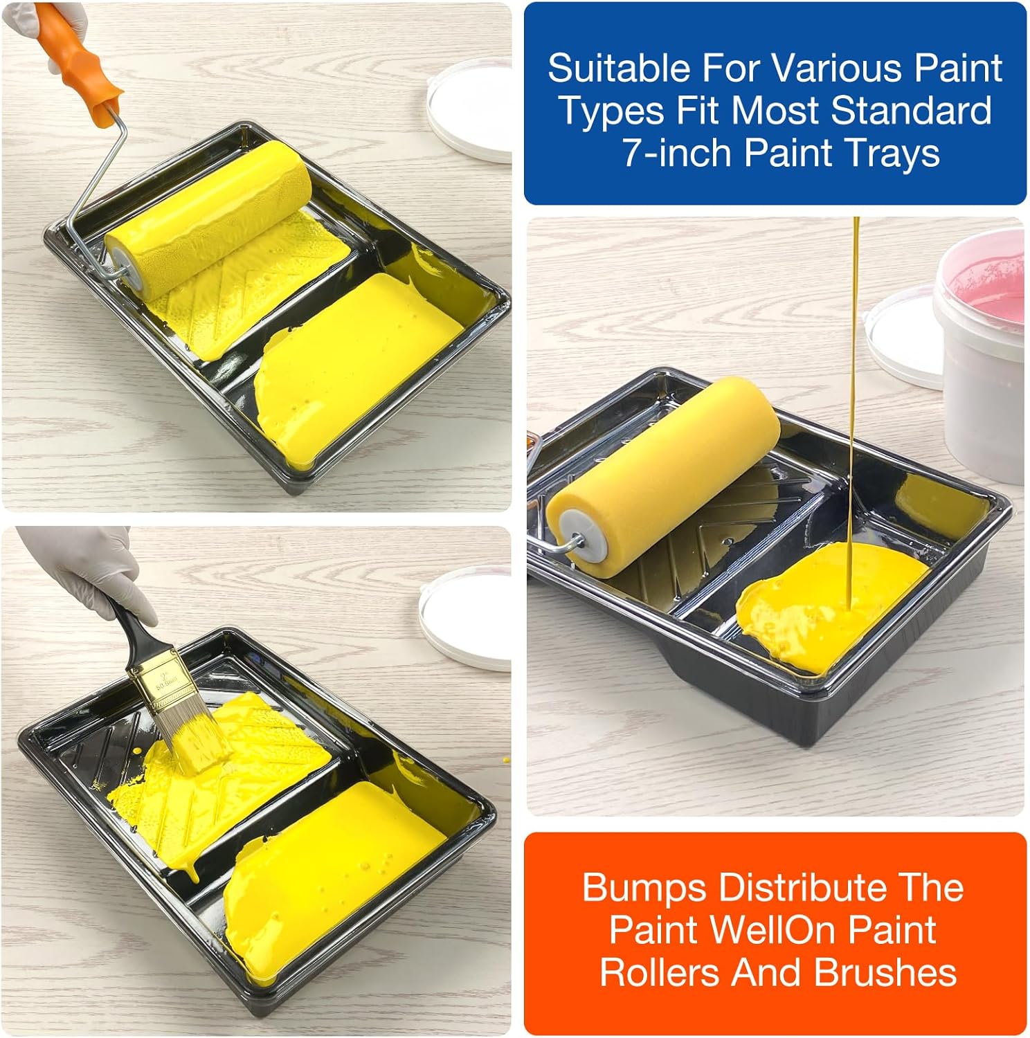 6 Pack Paint Tray Liners 7 Inch, 3 Heavy-Duty Plastic Trays with 3 Disposable Clear Liners, Paint Roller Trays, Paint Pan Liners for Walls, Furniture & DIY Painting Projects