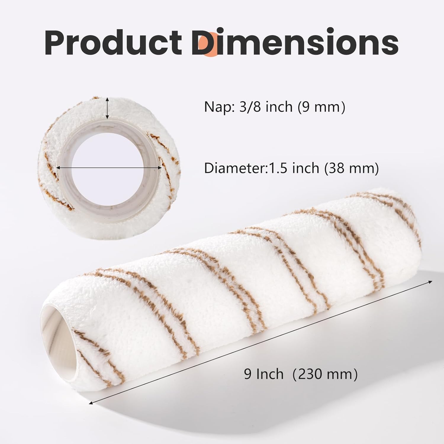 - INDIVIDUAL PACKAGE: Set includes 3 pack washable and reusable 9 inch microfiber paint roller covers 10 mm nap. Each paint roller cover has its own plastic wrap for easy storage