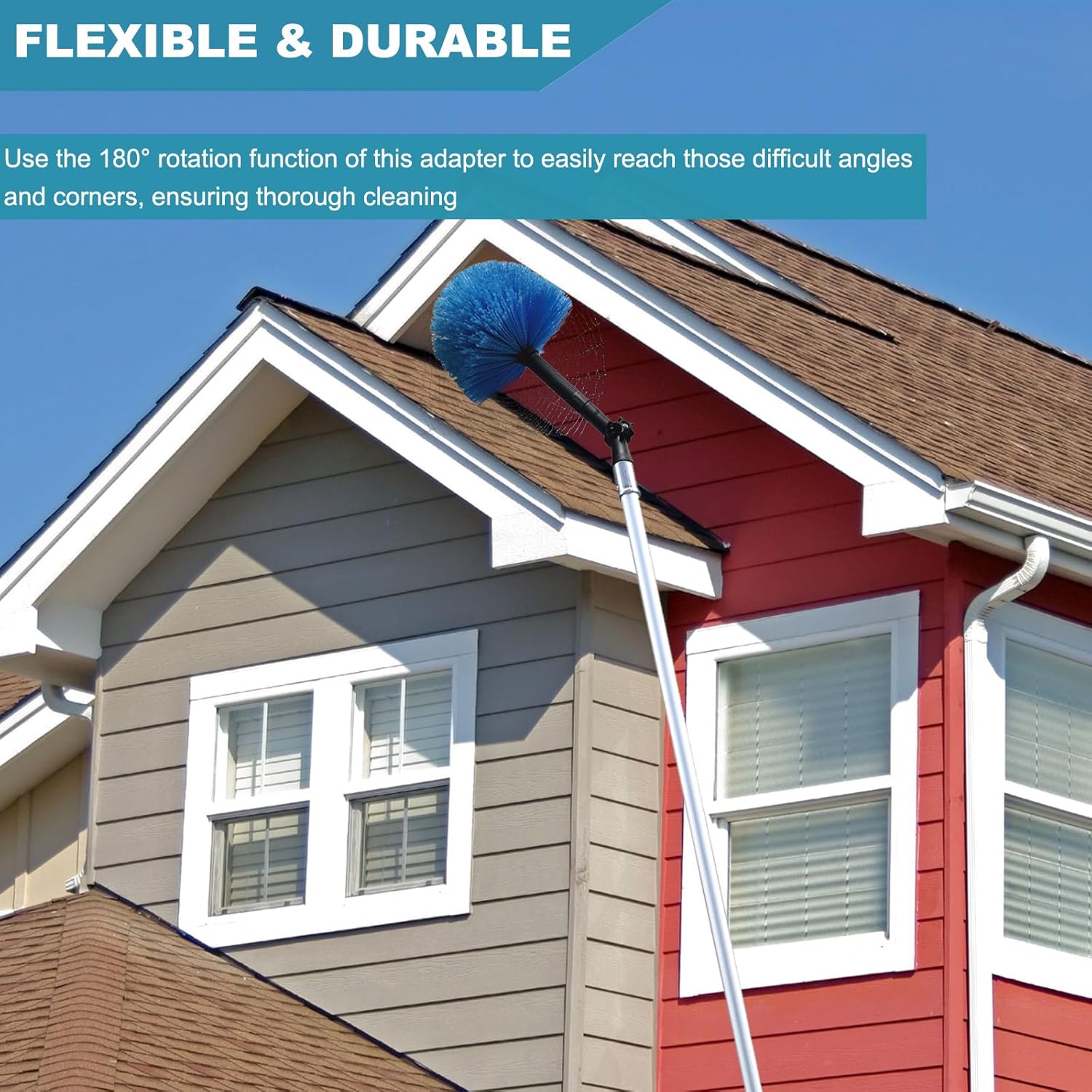 - 🔹 180° Adjustable Angle for Precision Access – Easily reach high ceilings, fans, gutters, windows, shelves, and more with a perpendicular approach for better control. No more awkward angles—clean, paint, or inspect hard-to-reach spots effortlessly.