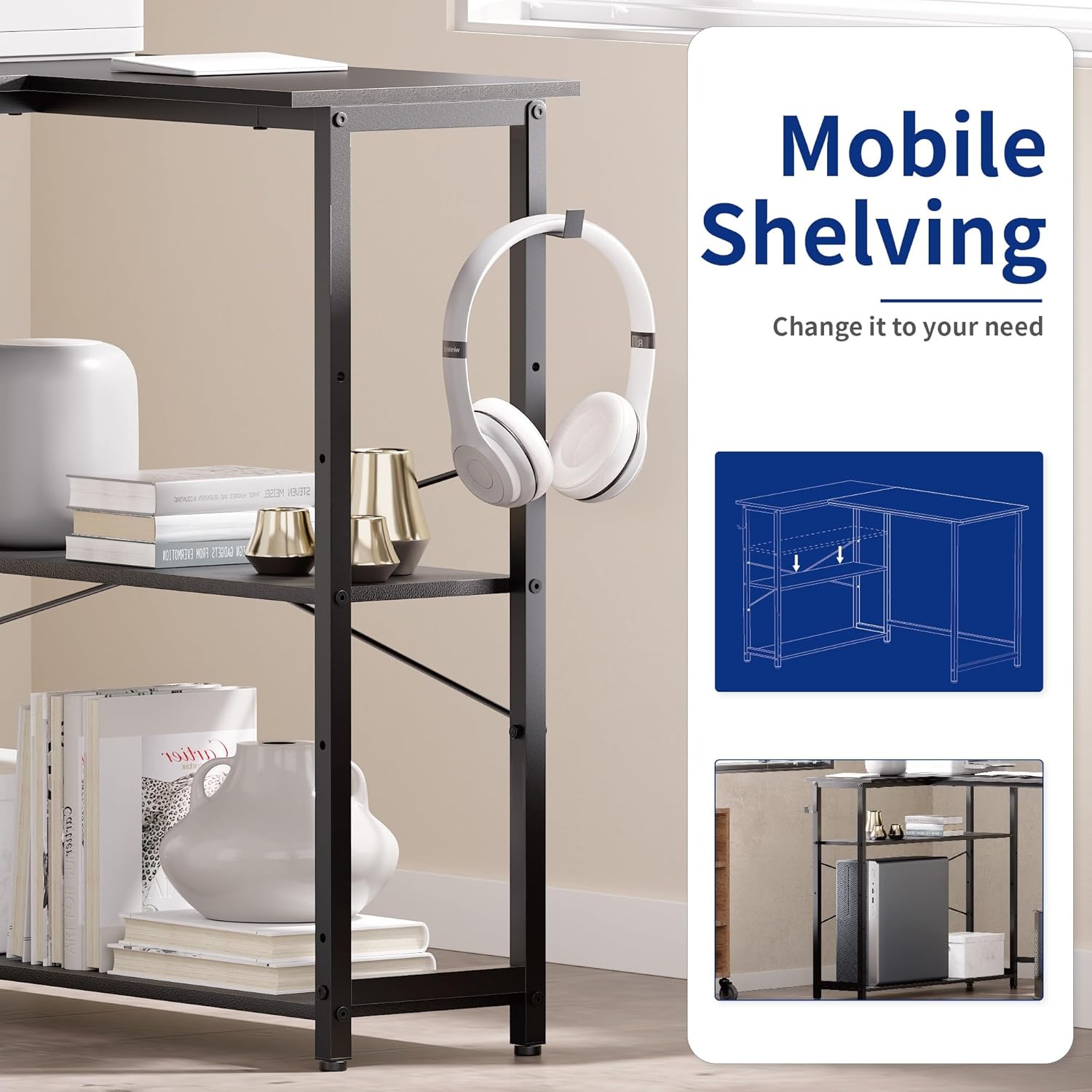 - Ample Storage Space -- This computer desk features two open shelves that can be adjusted in height to accommodate items of different sizes, allowing you to customize the shelves to fit your storage needs. Plus, it comes with a convenient hook for hanging bags and headphones.