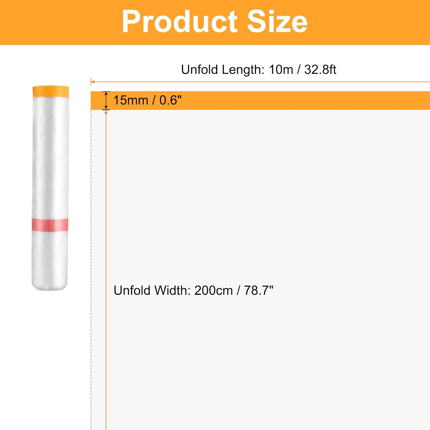 - Size - Total Size (unfold): 10m x 200cm / 32.8 ft x 78.7 in (L*W), Tape Width: 15mm / 0.6"
