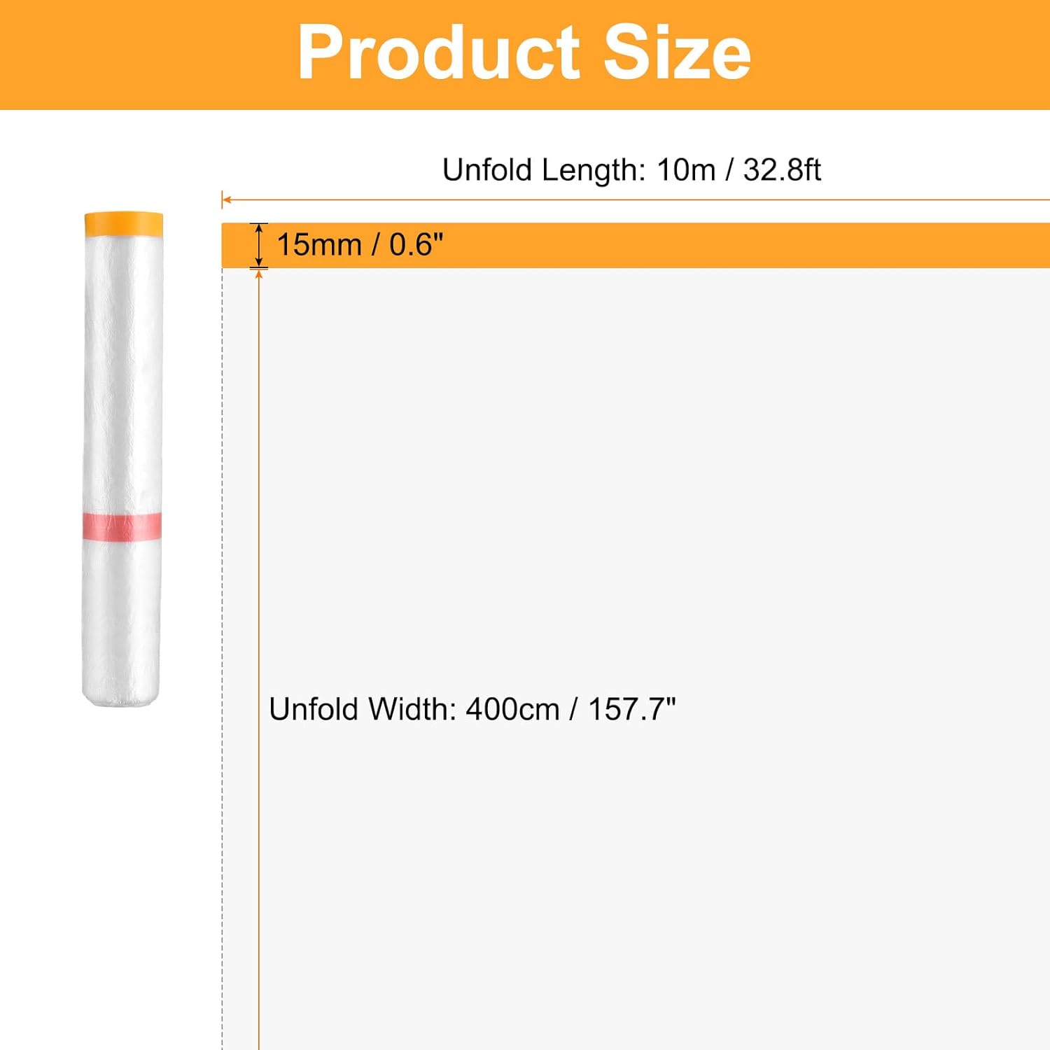 - Size - Total Size (unfold): 10m x 400cm / 32.8 ft x 157.5 in (L*W), Tape Width: 15mm / 0.6"