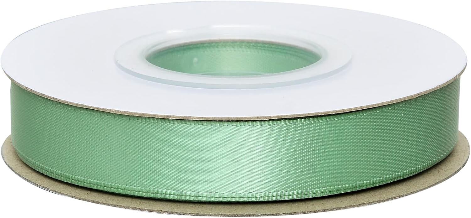 YAMA Sage Green Double Faced Satin Ribbon, 5/8 Inch 25 Yards, Light Green Ribbon for Gift Wrapping Crafts Hair Bows Wedding Party Decoration