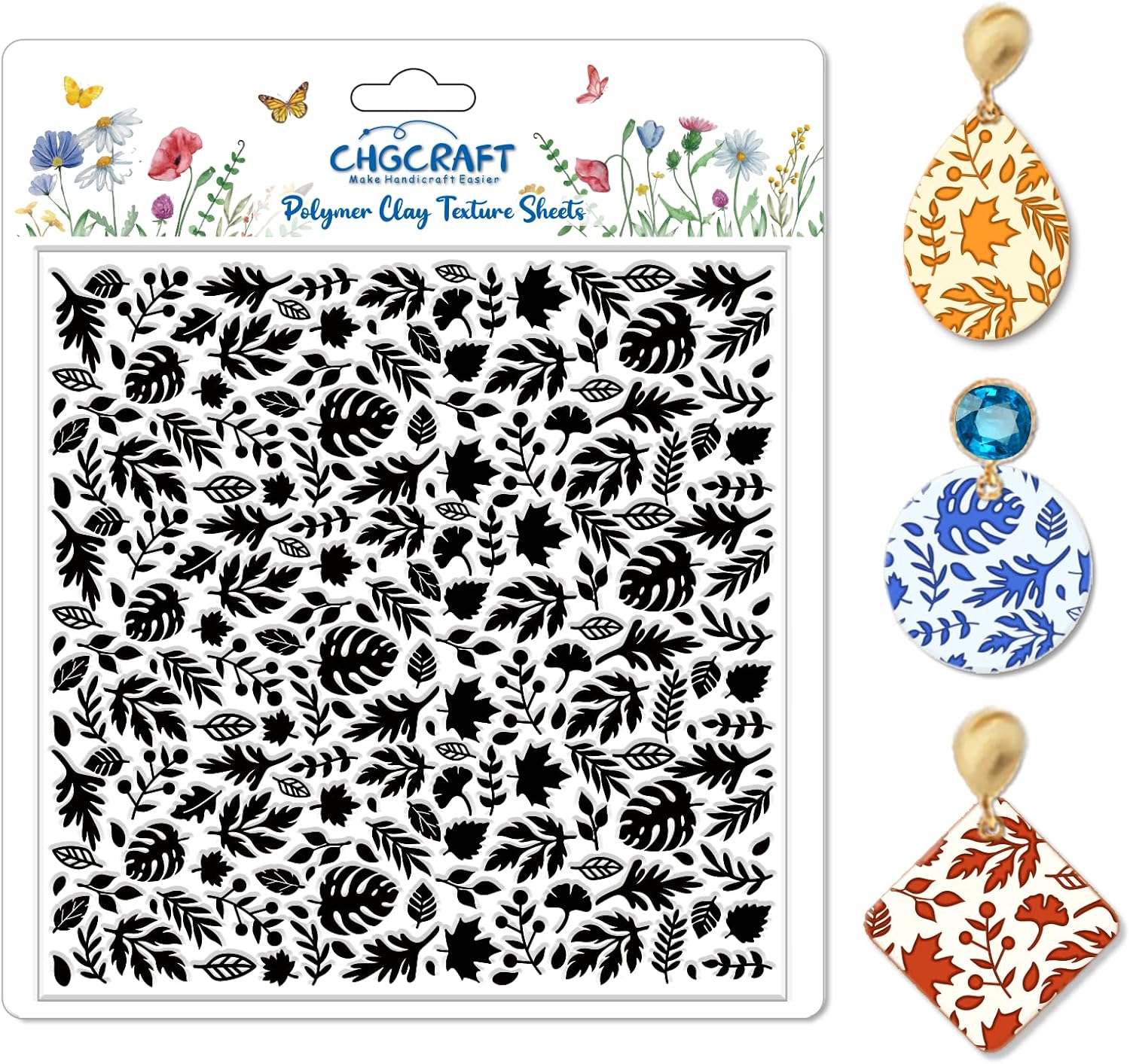 CHGCRAFT Autumn Leaves Pattern Polymer Clay Texture Sheet Plants and Maple Leaves Silicone Texture Mat for Polymer Clay Making Earrings Jewelry DIY Crafts 5.5 × 5.5 Inch