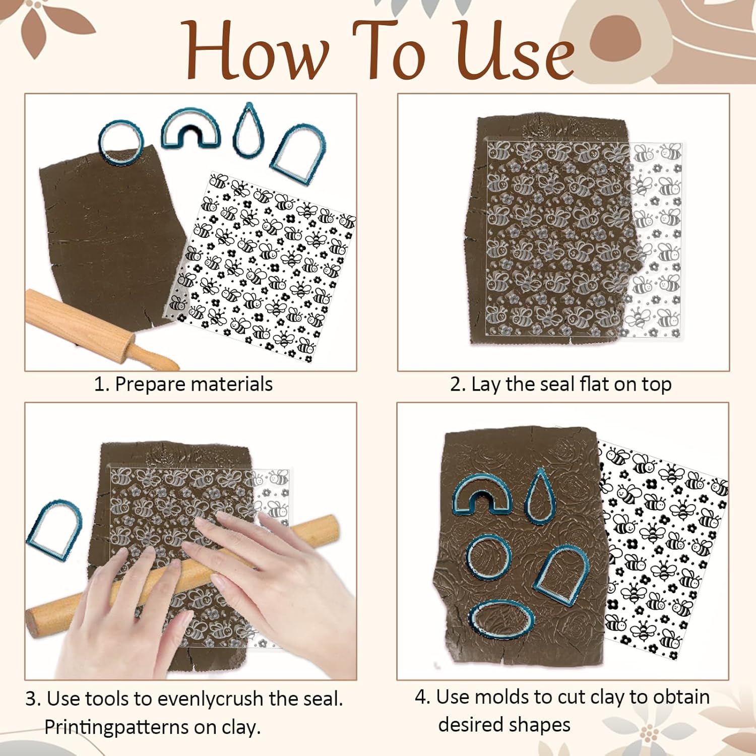 - What's Included: You’ll get a sheet of cartoon bees pattern silicone clay texture mat (approx. 5.5x5.5 inches / 14x14 cm), ideal for crafting polymer clay earrings, jewelry, and more, high quality clay texture mat is perfect for crafting