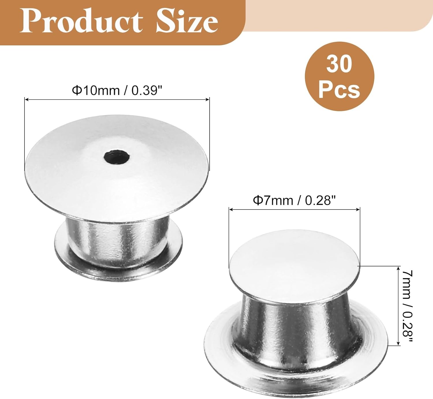 - [What You Get]: The package contains a total of 30pcs pin backs, the pin backs overall size 10 x 7 x 7 mm / 0.39 x 0.28 x 0.28 inch (Big Dia*Small Dia*H), which is enough to meet your diverse usage needs and bring you a wonderful usage experience
