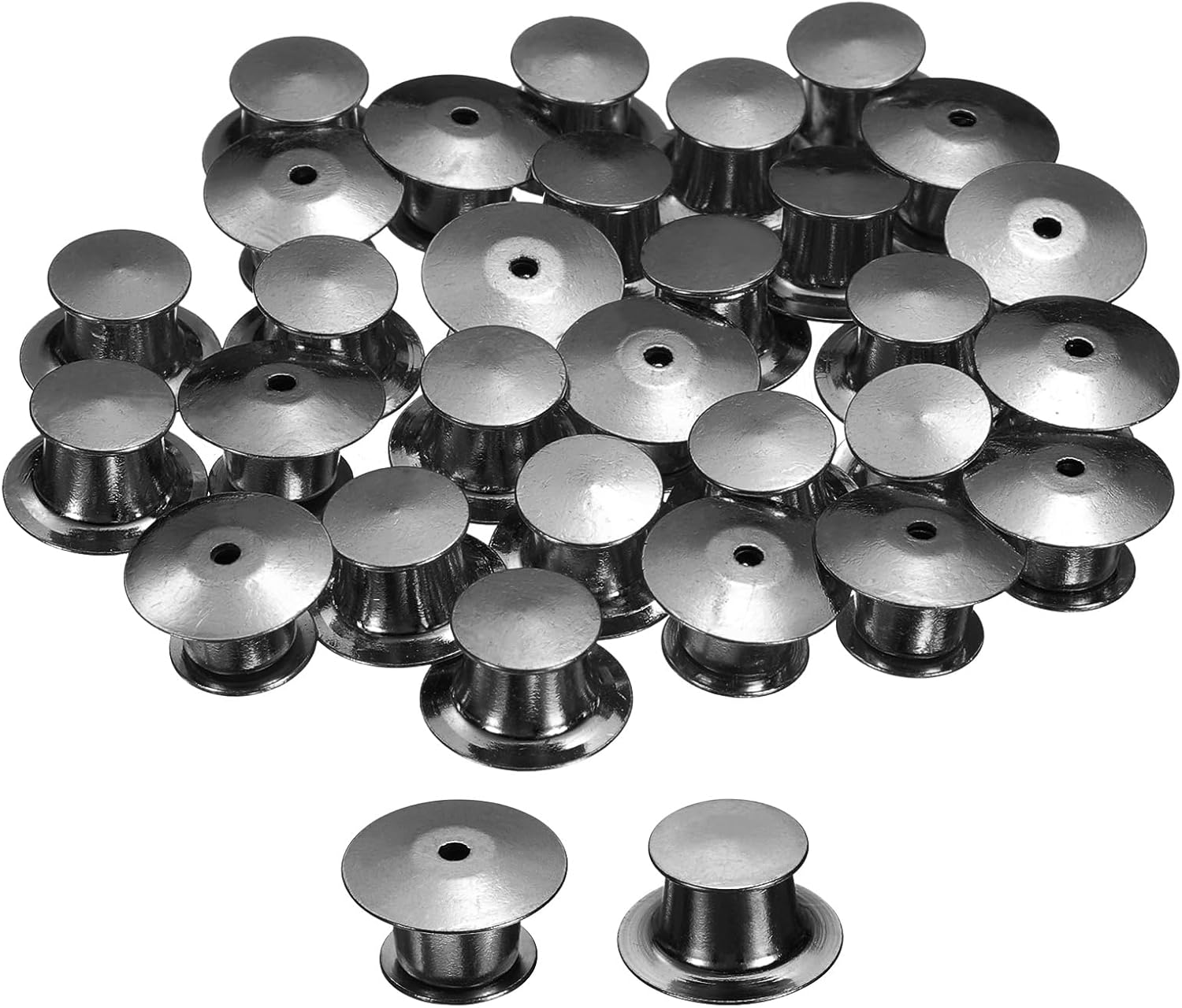 uxcell 30Pcs Metal Locking Pin Backs, Pin Keepers Locking Clasp Flat Head Clamp Needle Back Lock for DIY Brooch Crafts Badges Enamel Lapel, Metallic Black