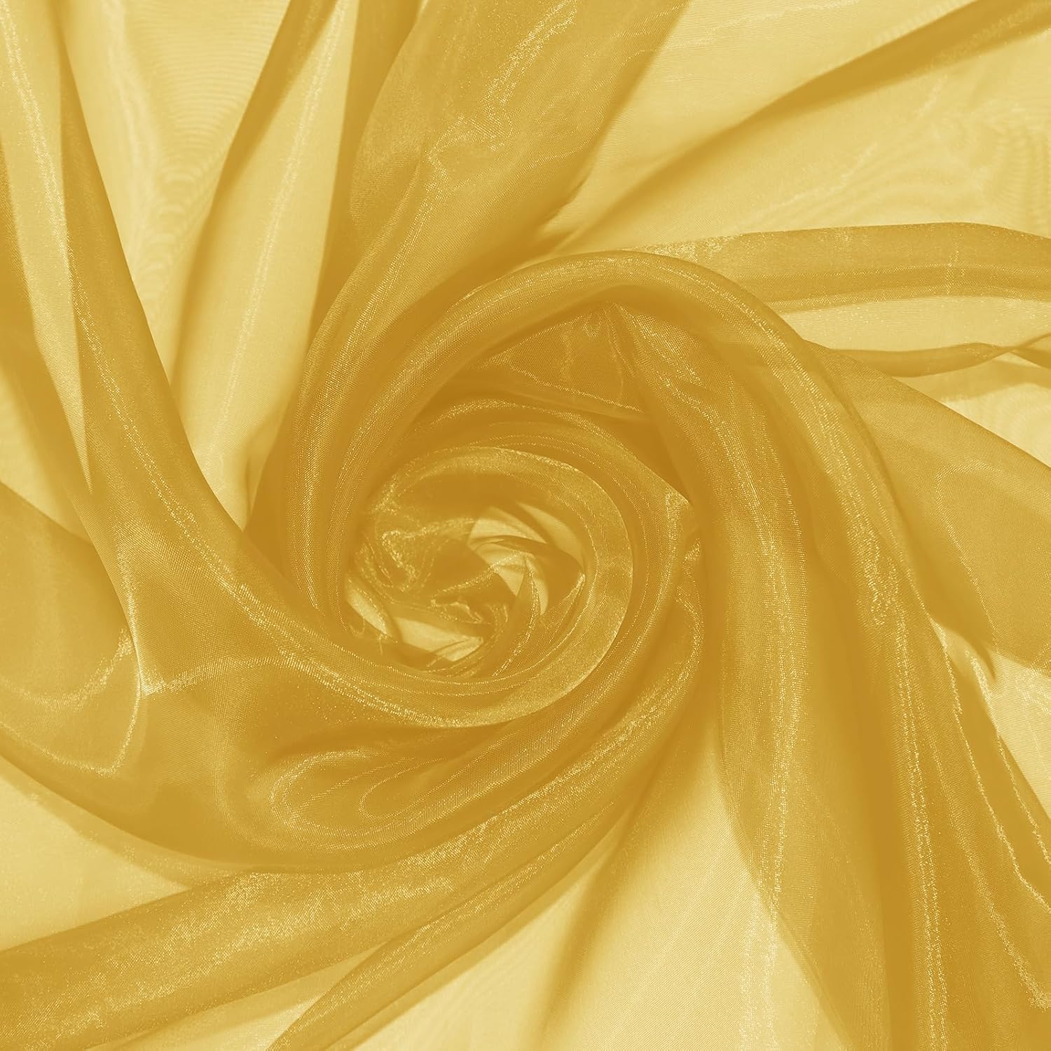 P Pothuiny Sheer Organza Fabric by The Yard, 3 Yards x 60 Inch Wide Bridal Gold Organza Tulle Fabric Roll Shiny Gauze Fashion Dress Sewing Craft for Wedding Party Decorations Backdrop