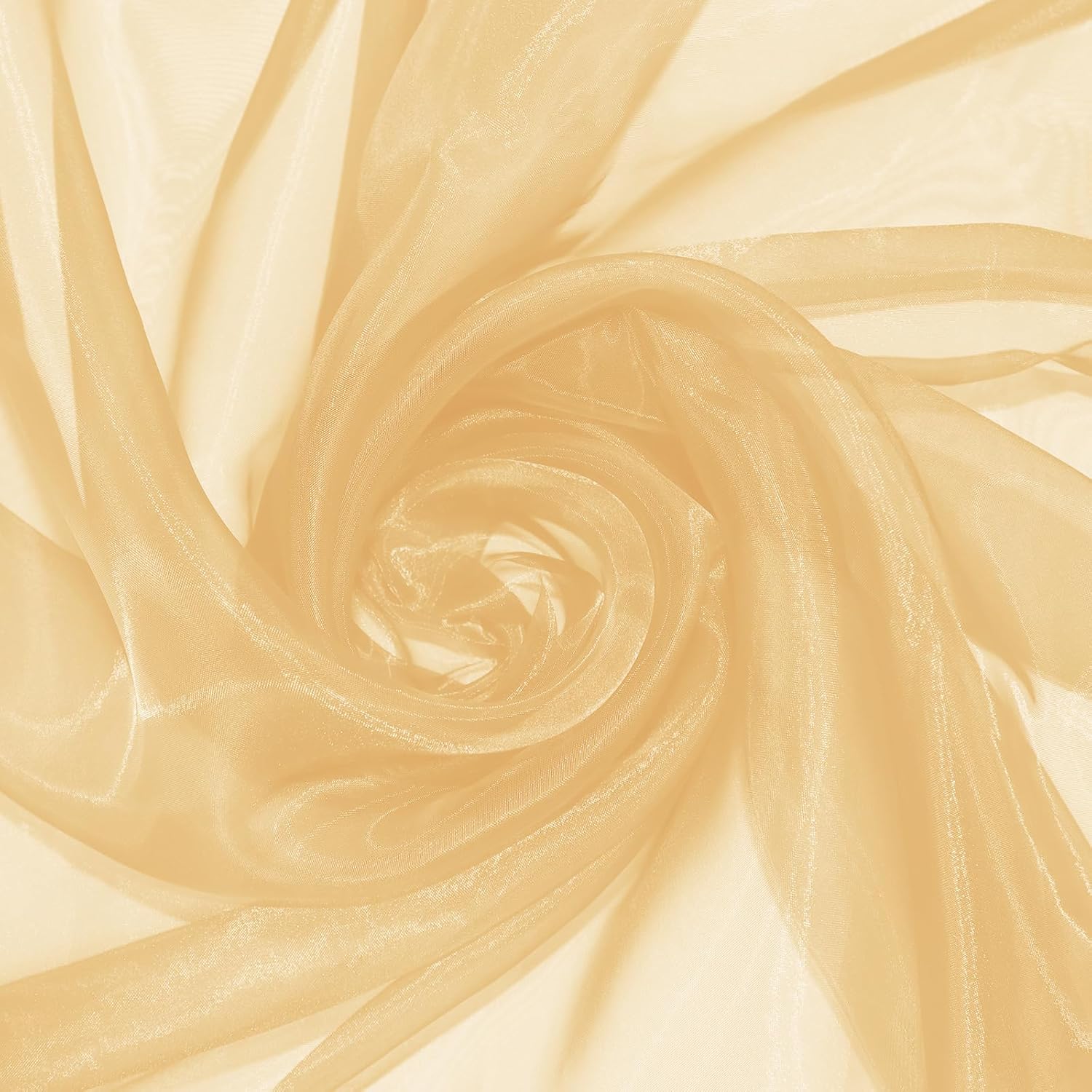 P Pothuiny Sheer Organza Fabric by The Yard, 1 Yard x 60 Inch Wide Bridal Champagne Organza Tulle Fabric Roll Shiny Gauze Fashion Dress Sewing Craft for Wedding Party Decorations Backdrop