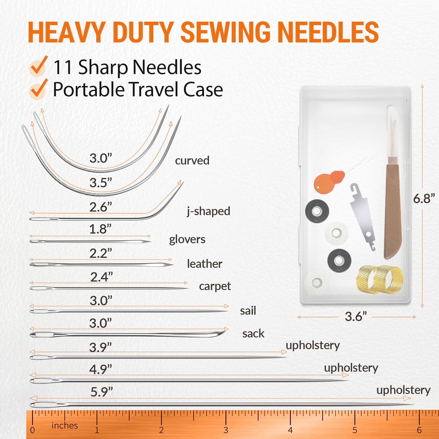 - STURDY NEEDLES: made from durable, rust-resistant stainless steel, these extra-sharp needles are designed for working with tough materials such as leather, vinyl, burlap, felt, nylon fabrics, canvas, and denim