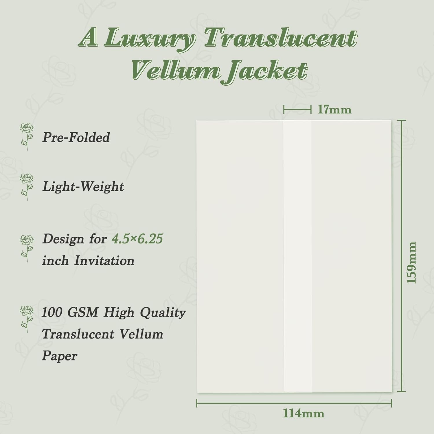 - VERSATILE: Add your wedding invitations to these stylish vellum jackets to impress your friends, family and colleagues before they arrive at your wedding,baby welcome parties, birthday parties, wedding receptions and other formal events.