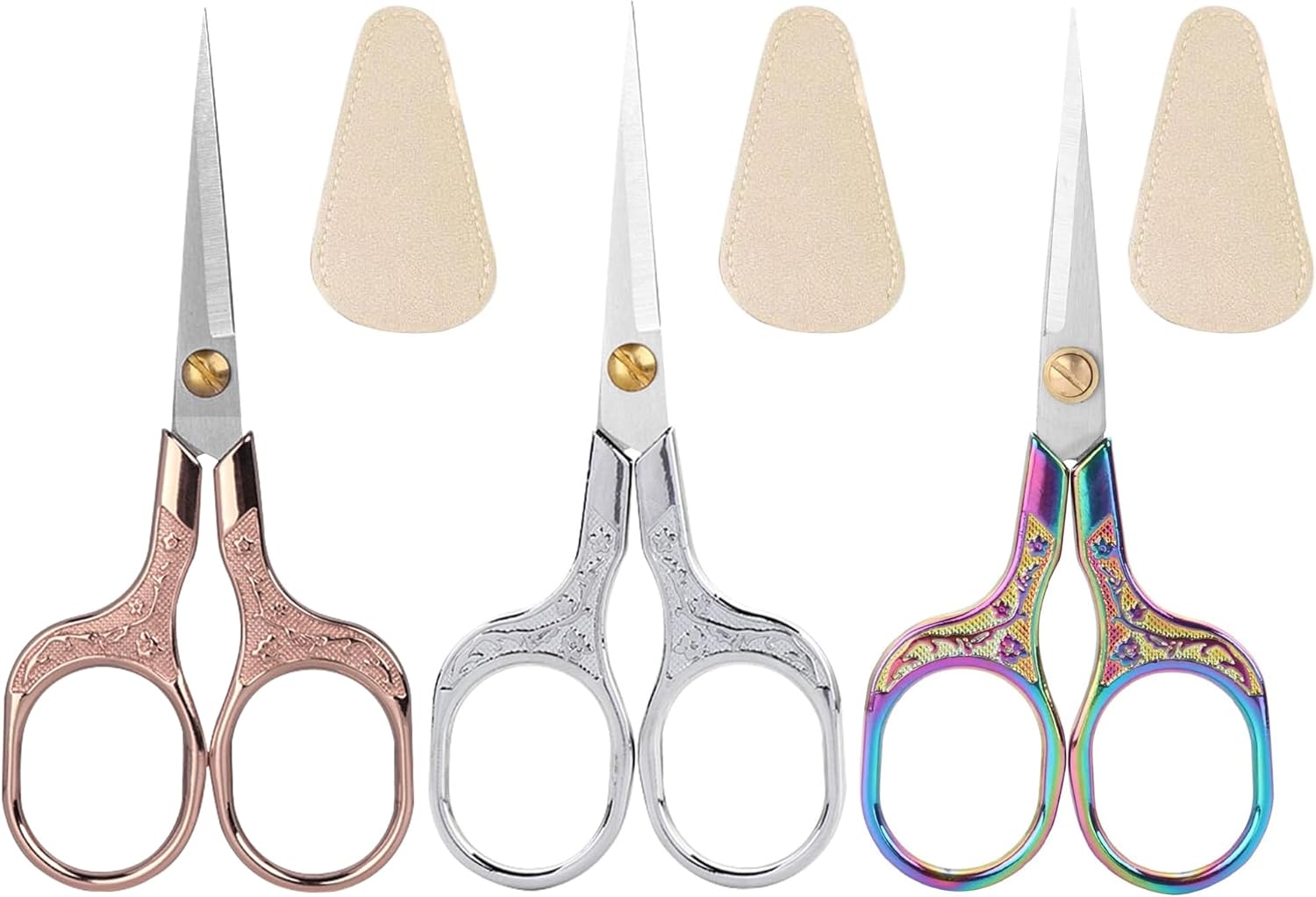 - Package Including: Package include 3 pcs stainless steel scissors and 3 pcs Leather protective Cover .It prevent the scissors from being directly exposed to the air, the scissors will not be easy to rust, and can also avoid scratching the surface of the scissors during storage. 3 pcs embroidery scissors are excellent quality, please feel free to use.