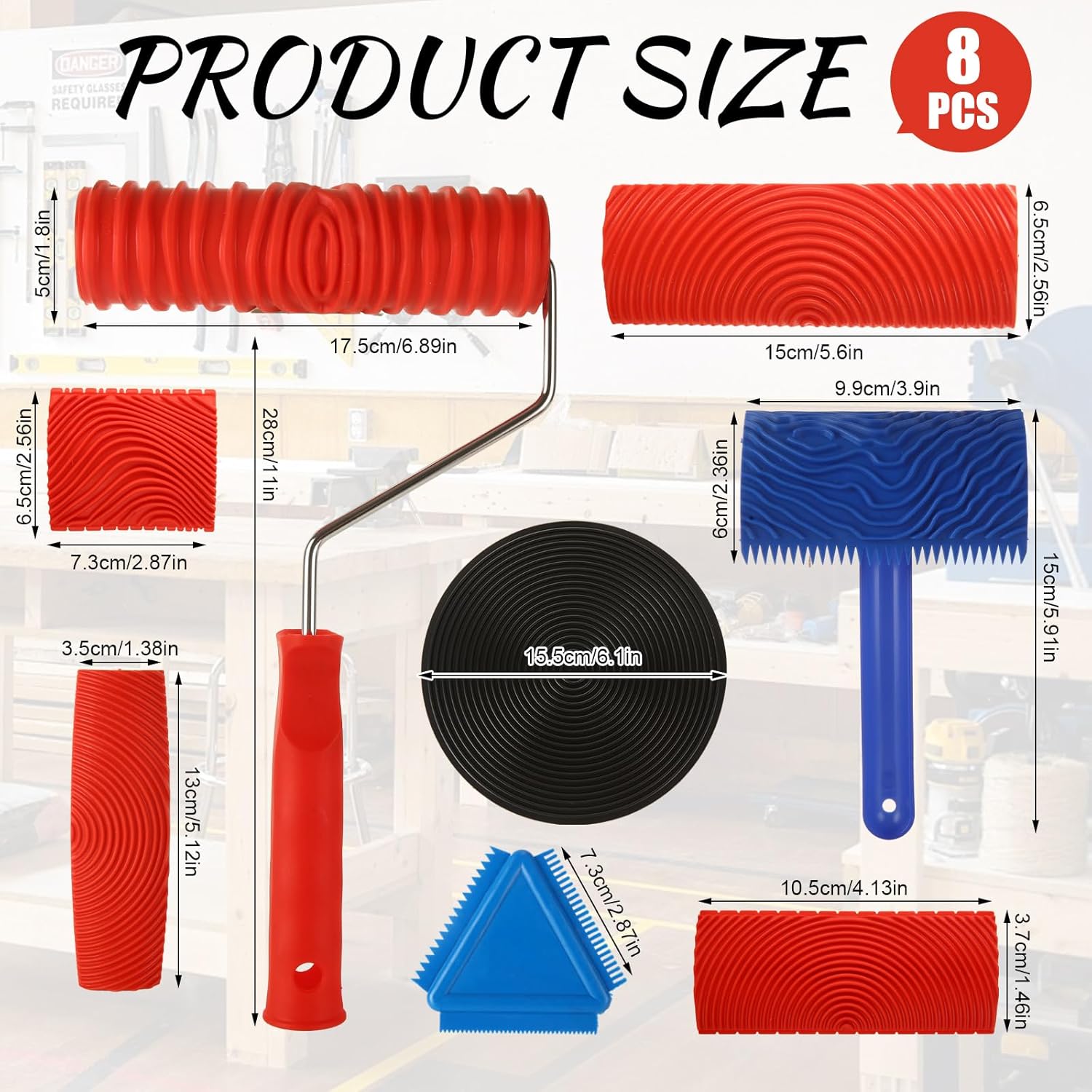 - 👍【PACKAGE INCLUDE & SIZE】You will receive an 8-piece Wood Grain Tool Set, allowing you to create a variety of beautiful wood grain patterns. Specific dimensions are shown in the second image.