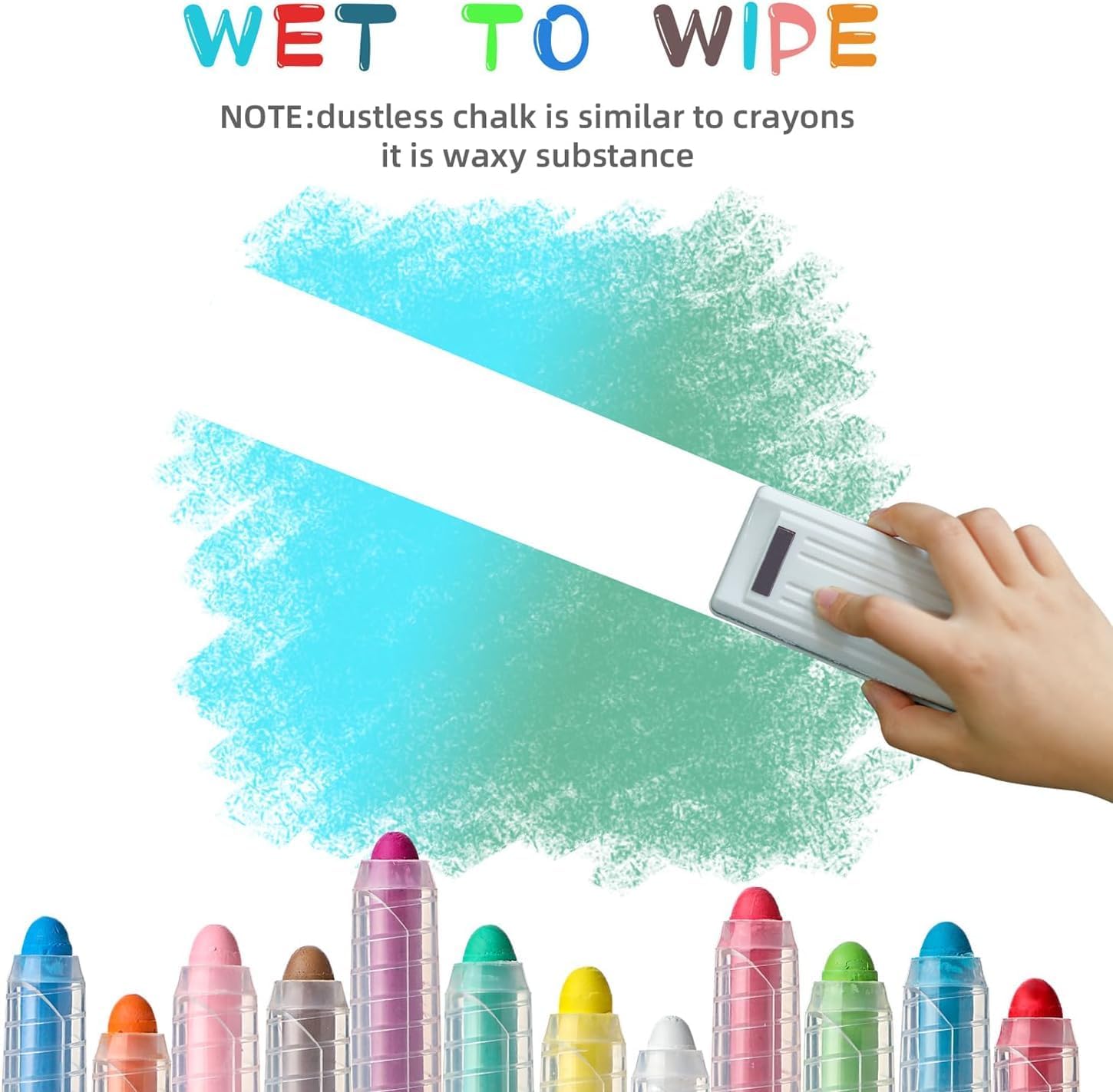 - Easy to clean:You can writes on glass, windows, wood, cardboard, chalkboards, whiteboards, and paper. Washable chalk! Easy to clean! All you need to do is rub it with a damp cloth or rub it in water.