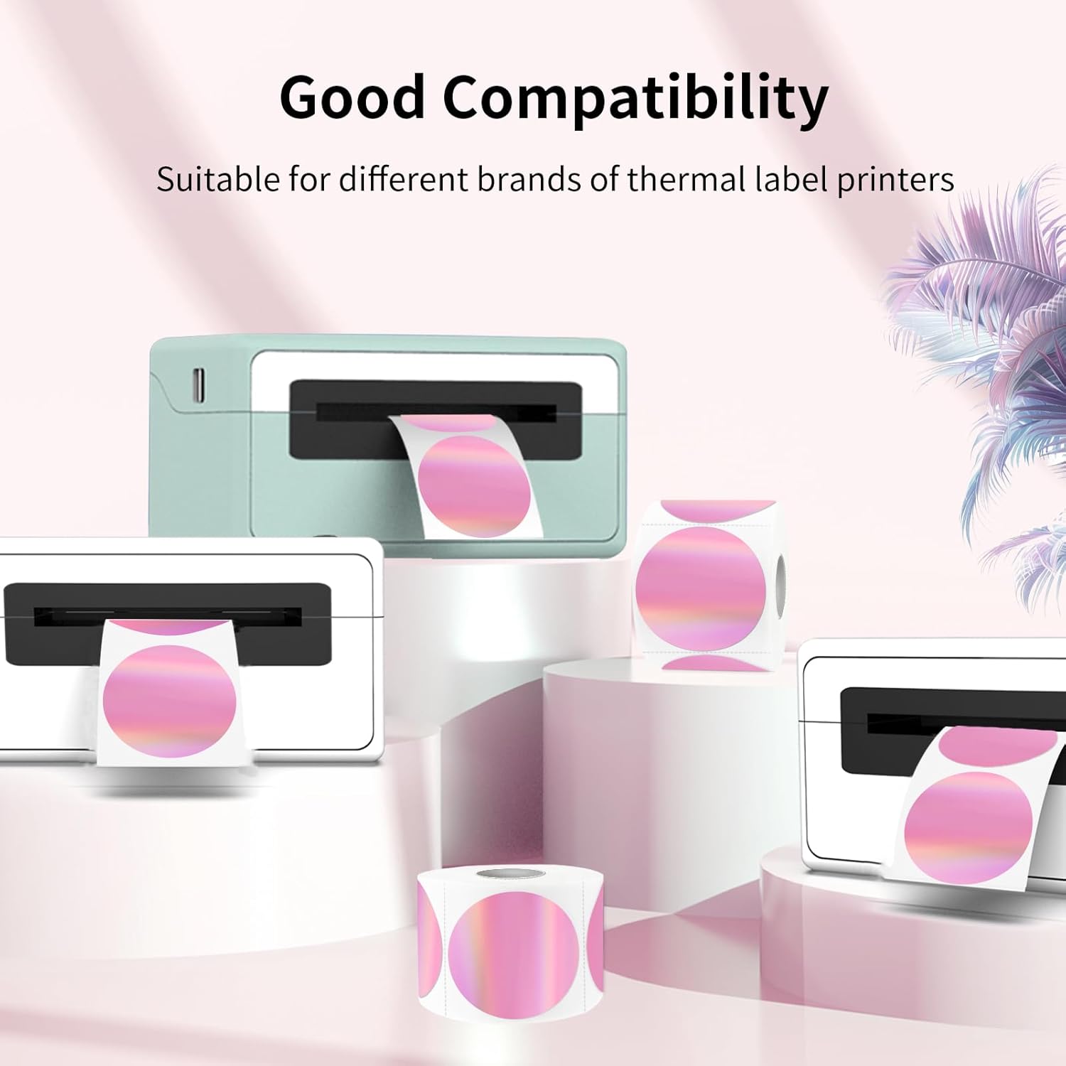 - 1.5" Circle Holographic Pink Thermal Labels Sticker, 350 Labels/Roll. It’s printable with a thermal printer, No ink toner or ribbons are needed