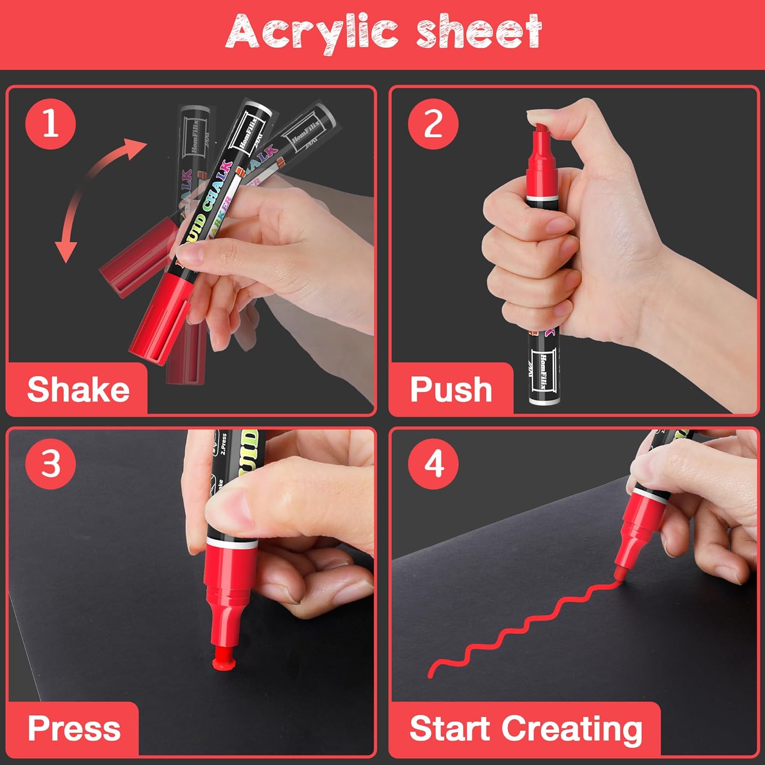 - Traditional Chalk vs. Liquid Chalk:Unlike traditional chalk that leaves dust, our liquid chalk markers are dust-free, quick-drying, and easily erasable on non-porous surfaces like glass, plastic, and metal. They won't smudge or fade, ensuring your markings stay clear and visible for longer, making them ideal for blackboards and glass