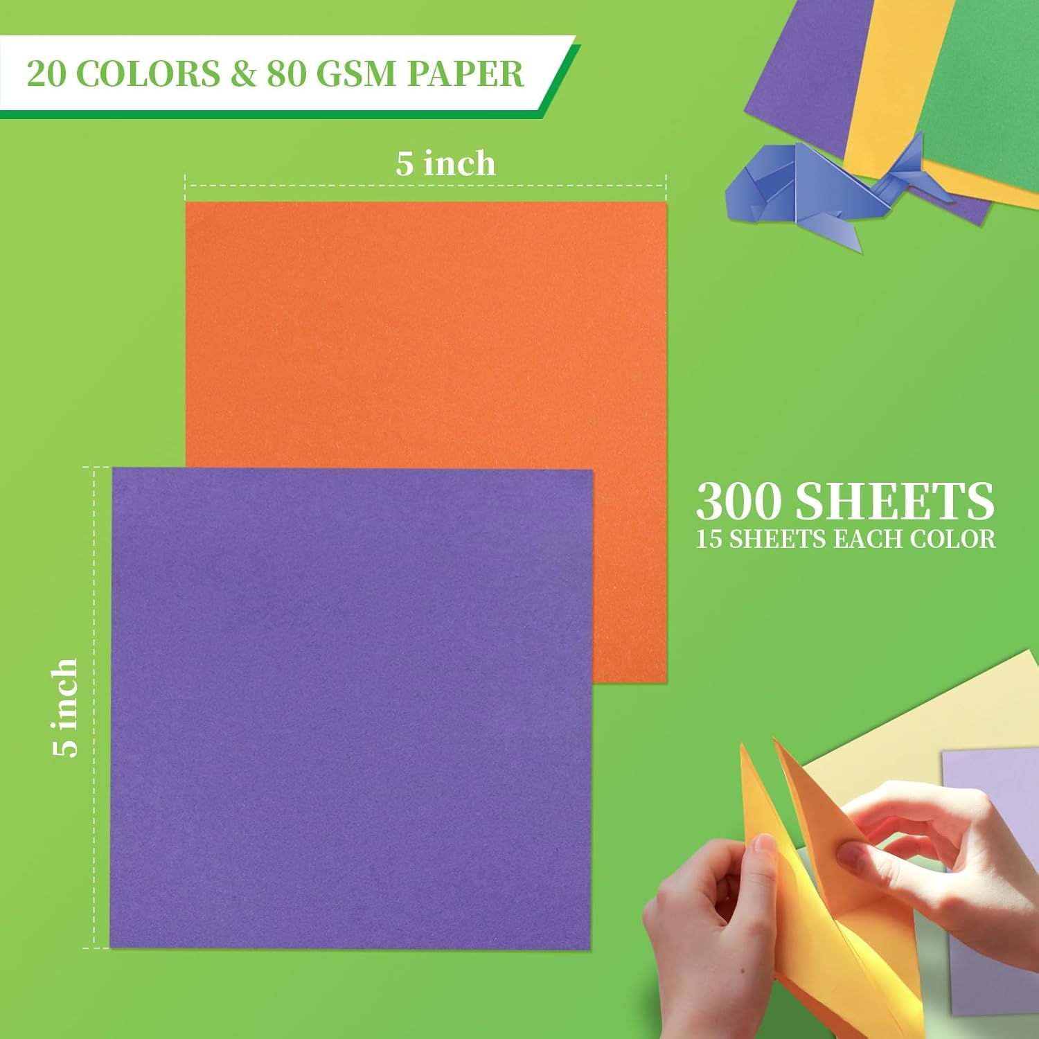 Granhoolm 300 Sheets Origami Paper, 20 Colors Origami Paper 5x5 inch,Double Sided Color Oragami Papers for Paper Artists,Craft Enthusiasts,Kids DIY School Arts Crafts