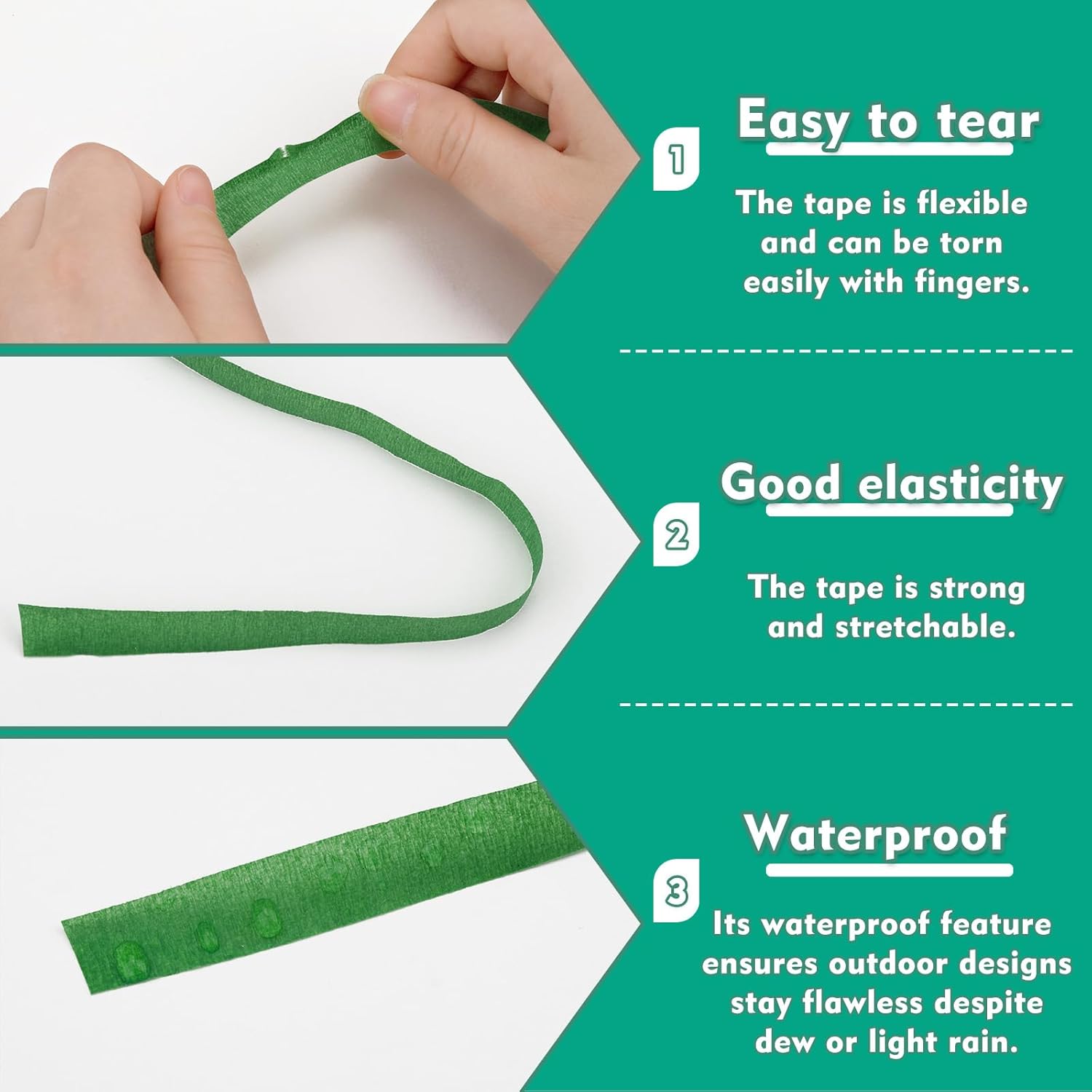 - Waterproof and Does Not Fade: Our green floral tapes still remain sturdy and long-lasting around the flower stems even if they are wrapped around the flower stems in the water. The tape is waterproof, providing maximum viscosity for a wet surface, and will not fade even when immersed in water