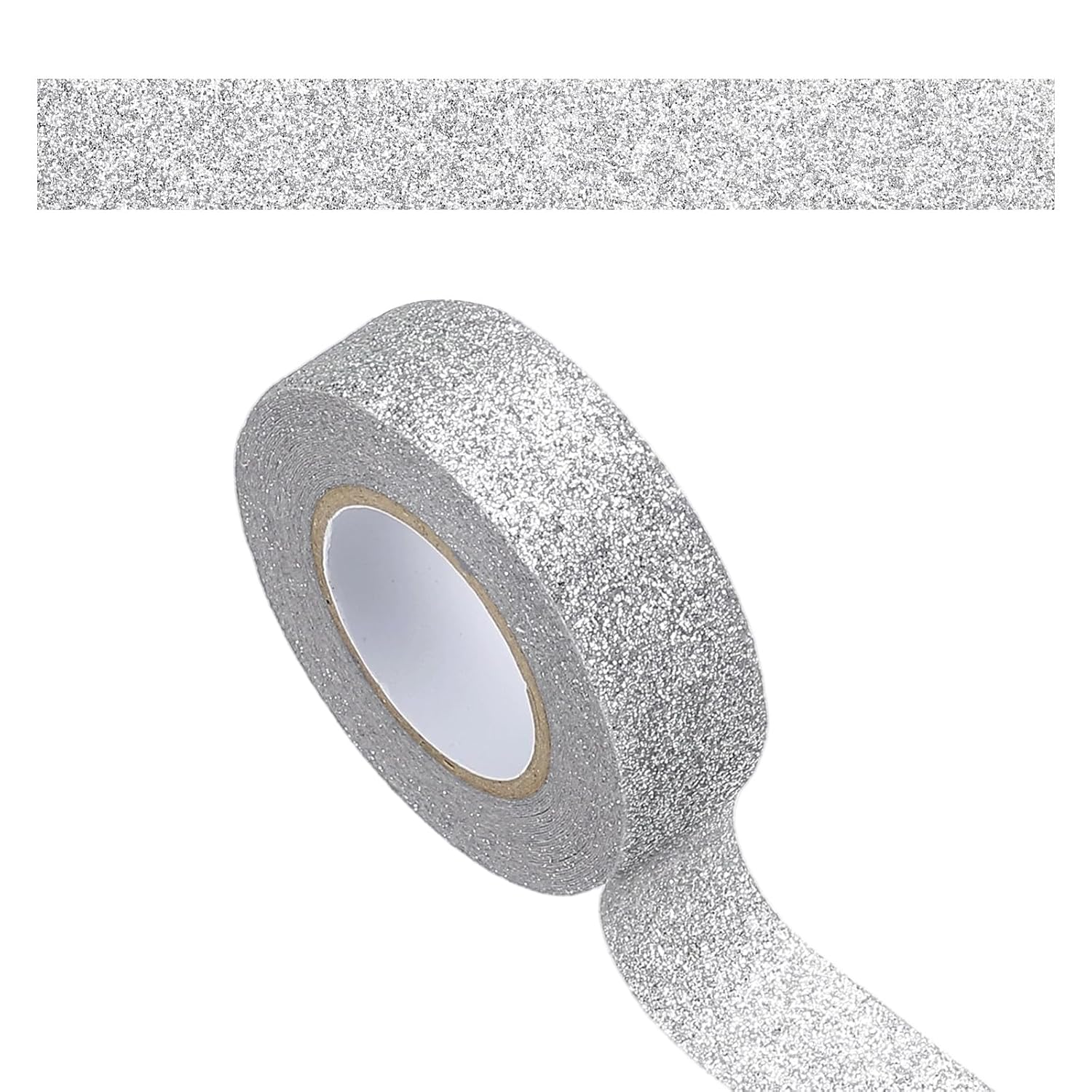 PATIKIL 1 Roll Glitter Paper Washi Tape, Washi Decorative Tape for Crafts, Silver