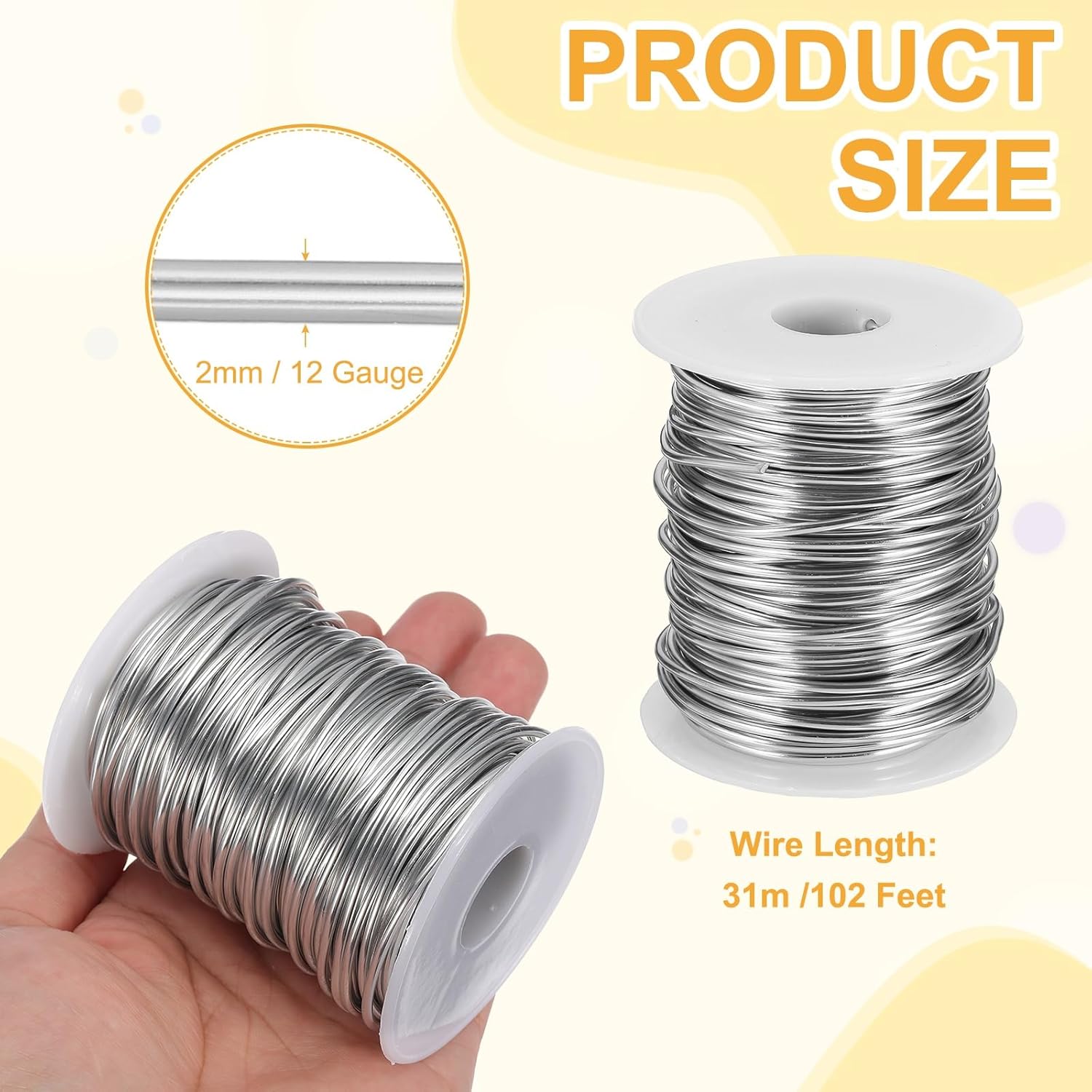- Color: Silver; Material: 1060 Aluminum; Wire Length: 2mm /12 Gauge; Wire Size: 31m /102 Feet