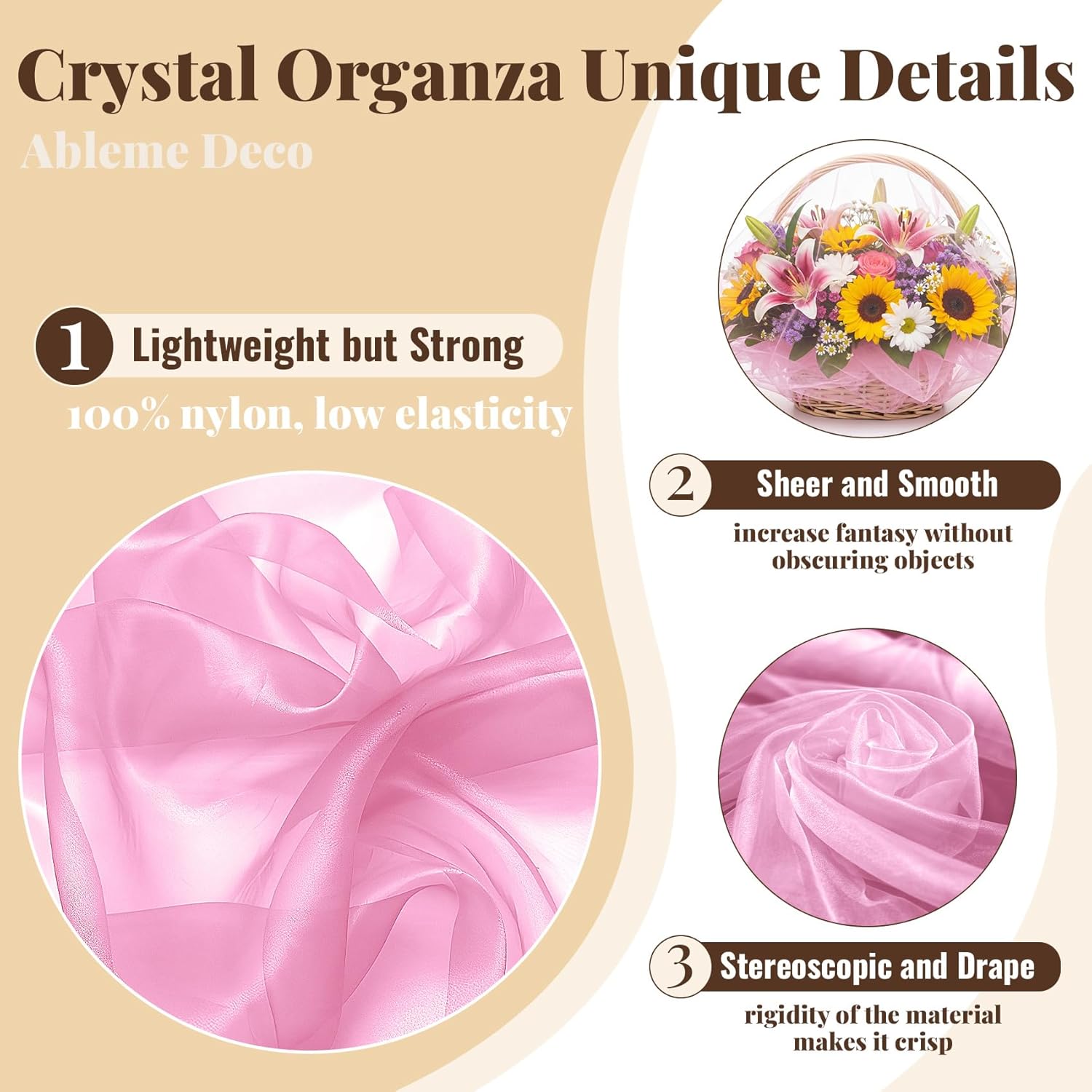 - Sheer & Lightweight with Elegant Drape: Soft to the touch, semi-transparent, and holds its shape beautifully