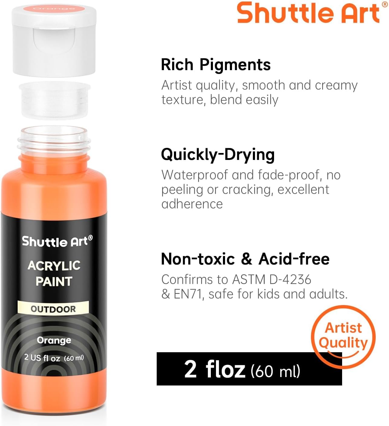 - EXCEPTIONAL OUTDOOR PERFORMANCE: Shuttle Art outdoor acrylic paints offer superior water resistance and coverage, ensuring your artwork stays vibrant and intact in outdoor conditions, from sun exposure to rain. Compared to regular acrylic paints, specialised outdoor paints provide better waterproof, fade-resistant, and UV-resistant properties