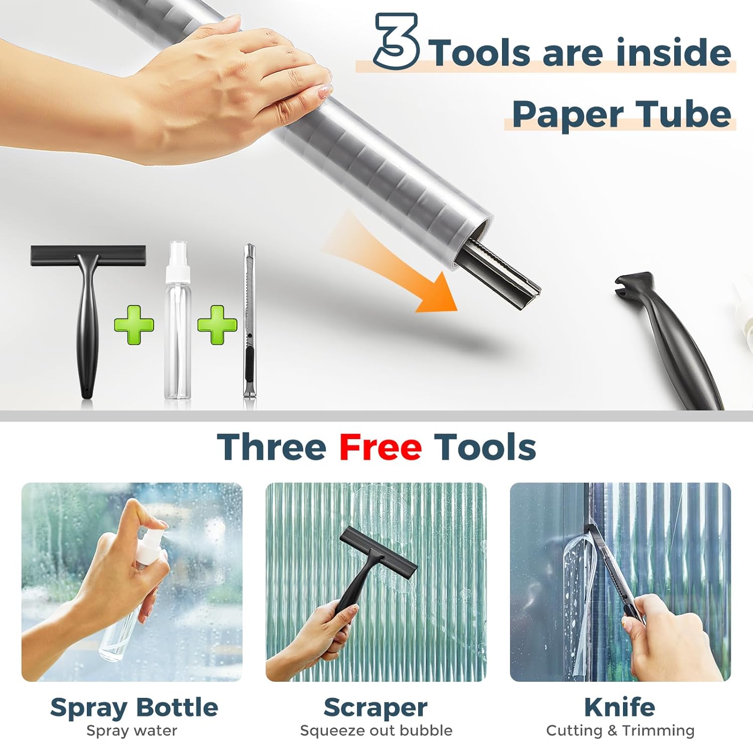 - Window Film with 3 Tools: Scraper,spray bottle and knife in the carton rolls, no worry tools and make a easy and convenient installation