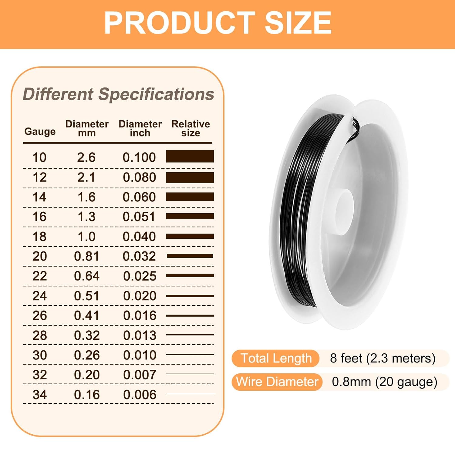 - Size - The diameter of the art wire is about 0.8mm (20 gauge) and 8 feet (2.3 meters) long. The art wire is suitable for jewelry making, beading, and jewelry repair.