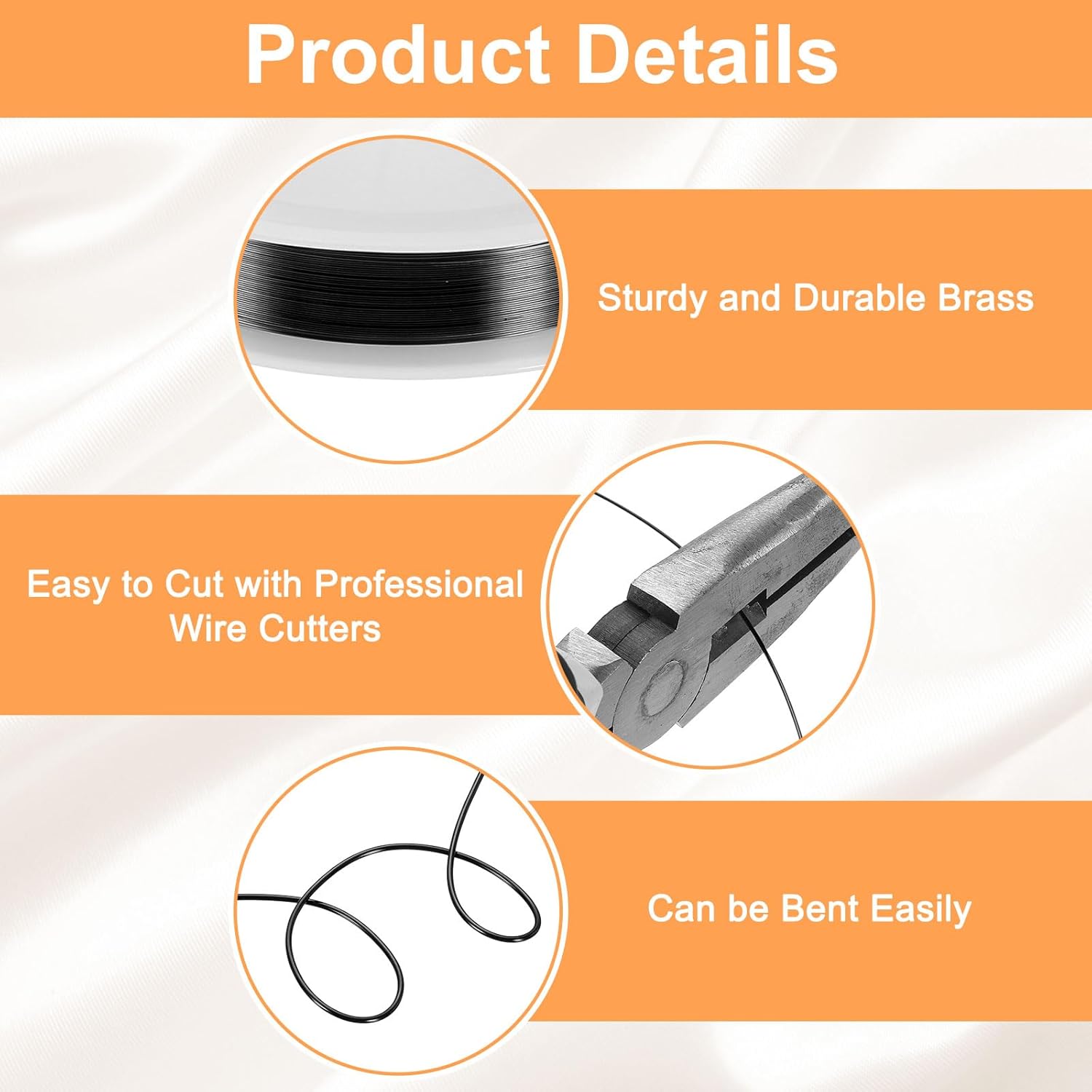 HARFINGTON 82ft Jewelry Wire, 32 Gauge (0.2mm) Brass Craft Soft Metal Tarnish Resistant Copper Beading Wire for Jewelry Making Supplies Crafting, Black
