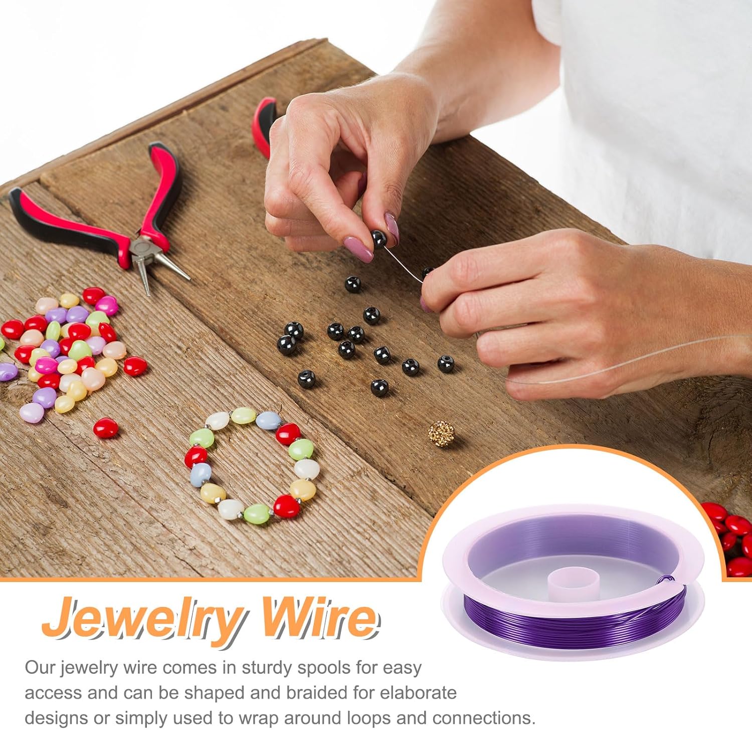- Features - The jewelry wire is bendable and flexible, easy to use, and can be used with different types of beads, necklaces, bracelets, and other jewelry DIY projects. In addition, it is packaged in a sturdy spool, which is convenient to take out the metal craft wire and keep it neat and not messy.